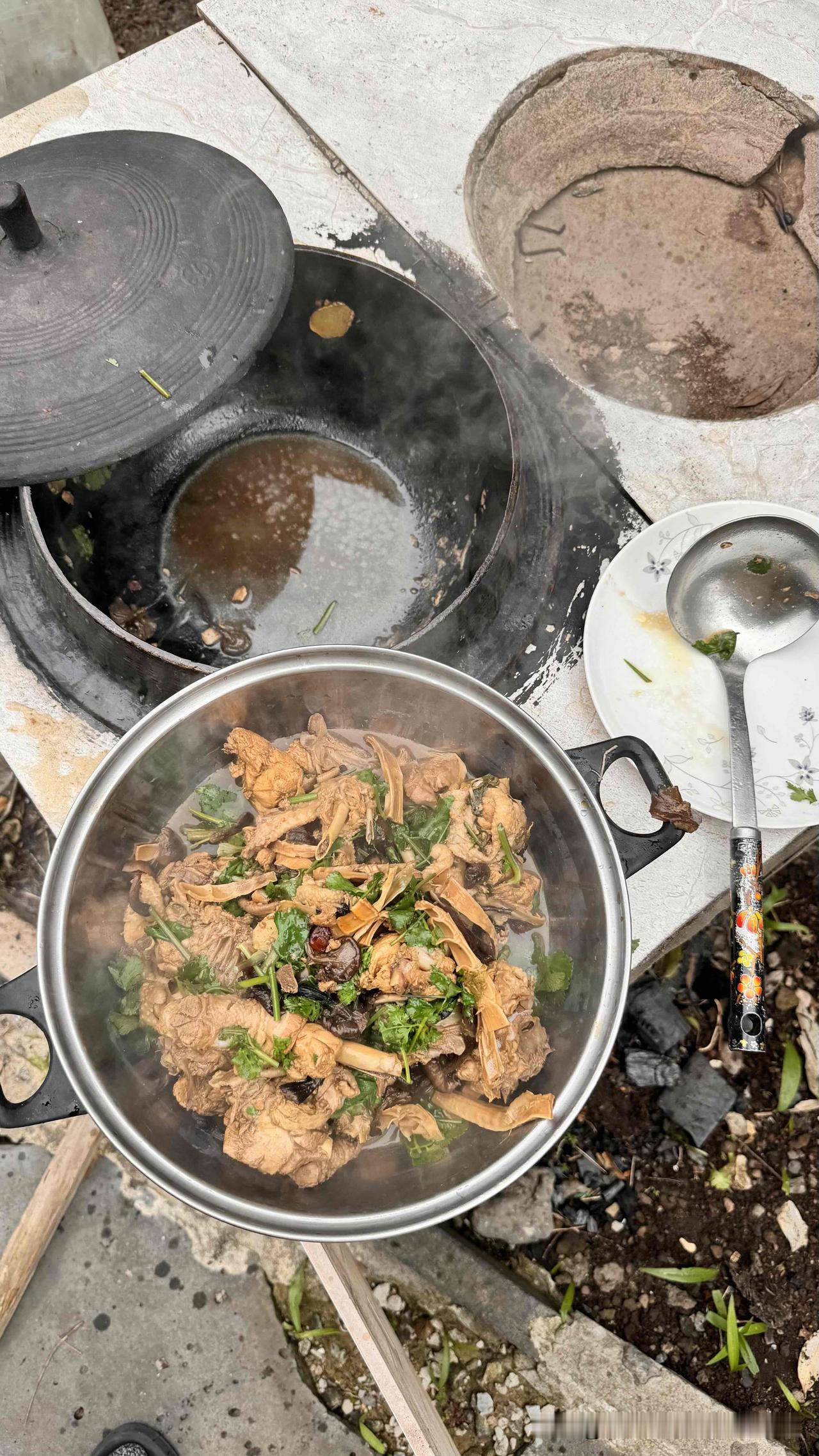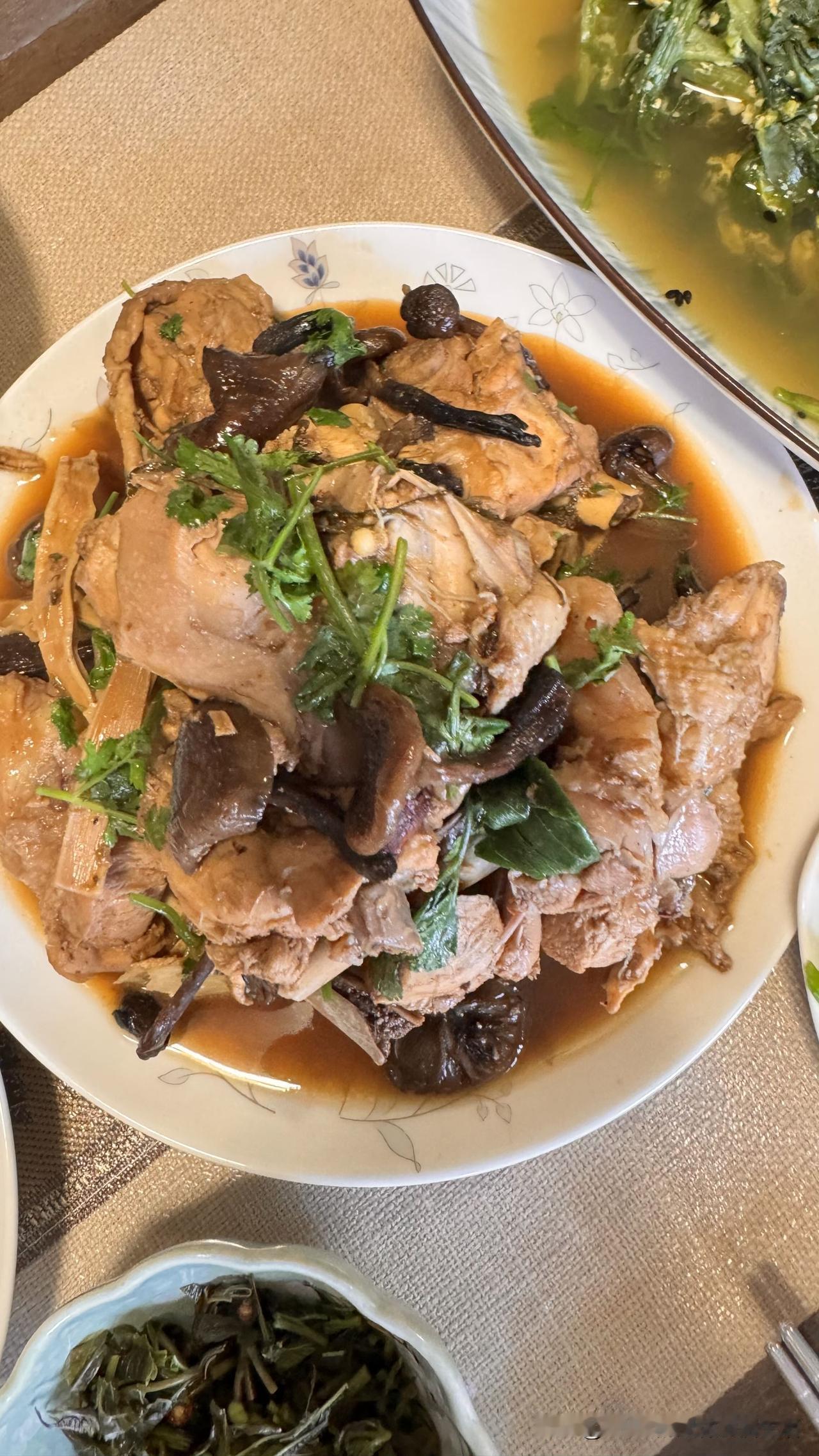 臻蘑是这道菜的灵魂,我们家的蘑菇炖小鸡还有一道点睛食材:香菜!出锅时撒一把小院自产香菜,鲜香味儿再升高一个档次。