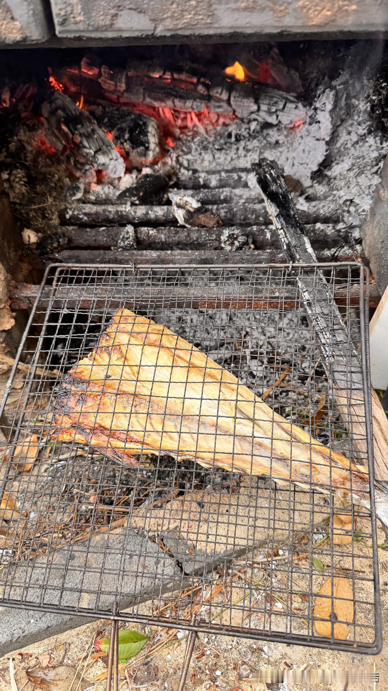 小鸡炖蘑菇要想吃的尽兴,得需海鲜搭配,烤了半条自家晾晒的甜晒鲅鱼。鱼香肉香相交织,滋味才能更醇厚绵长。