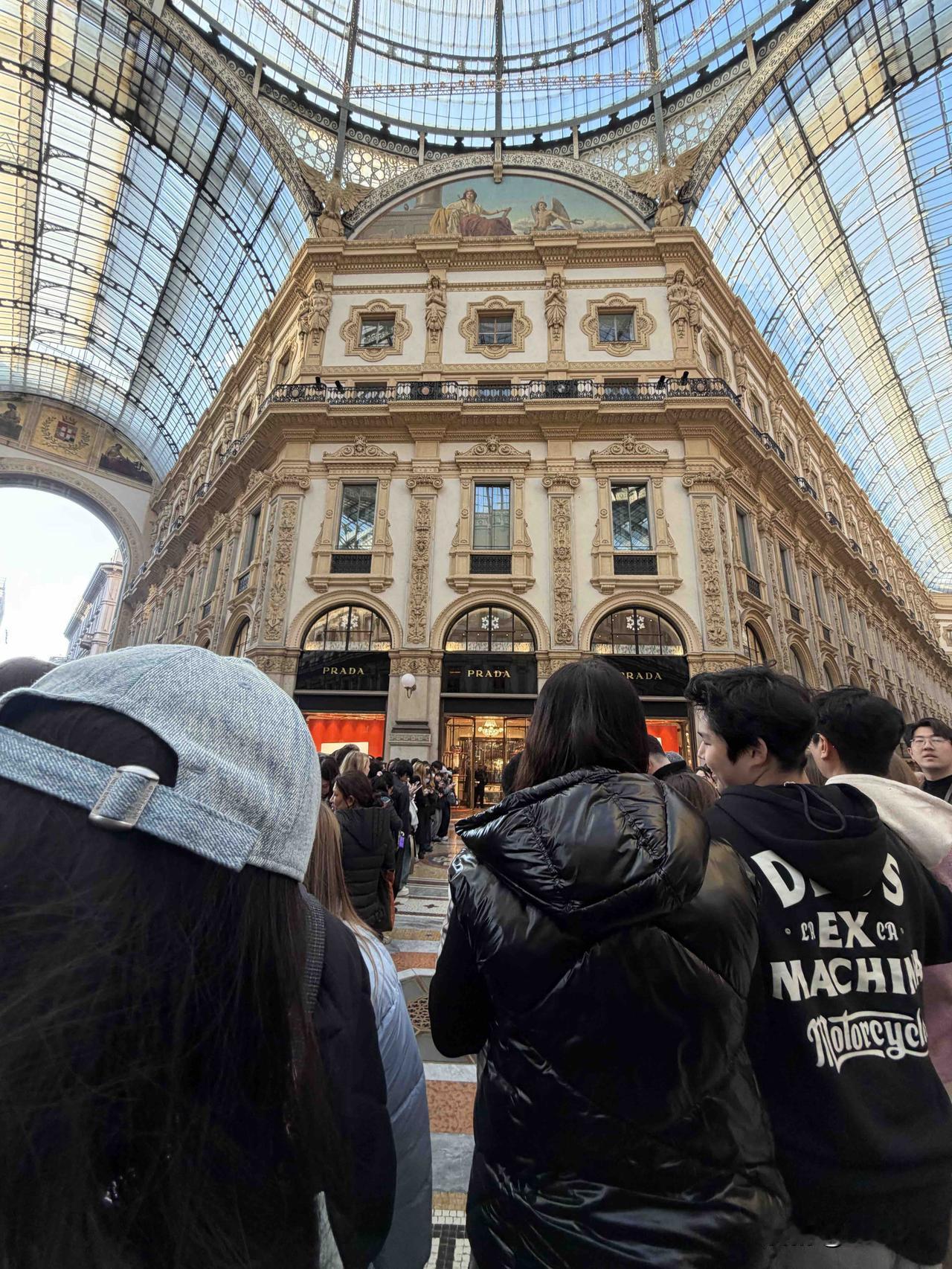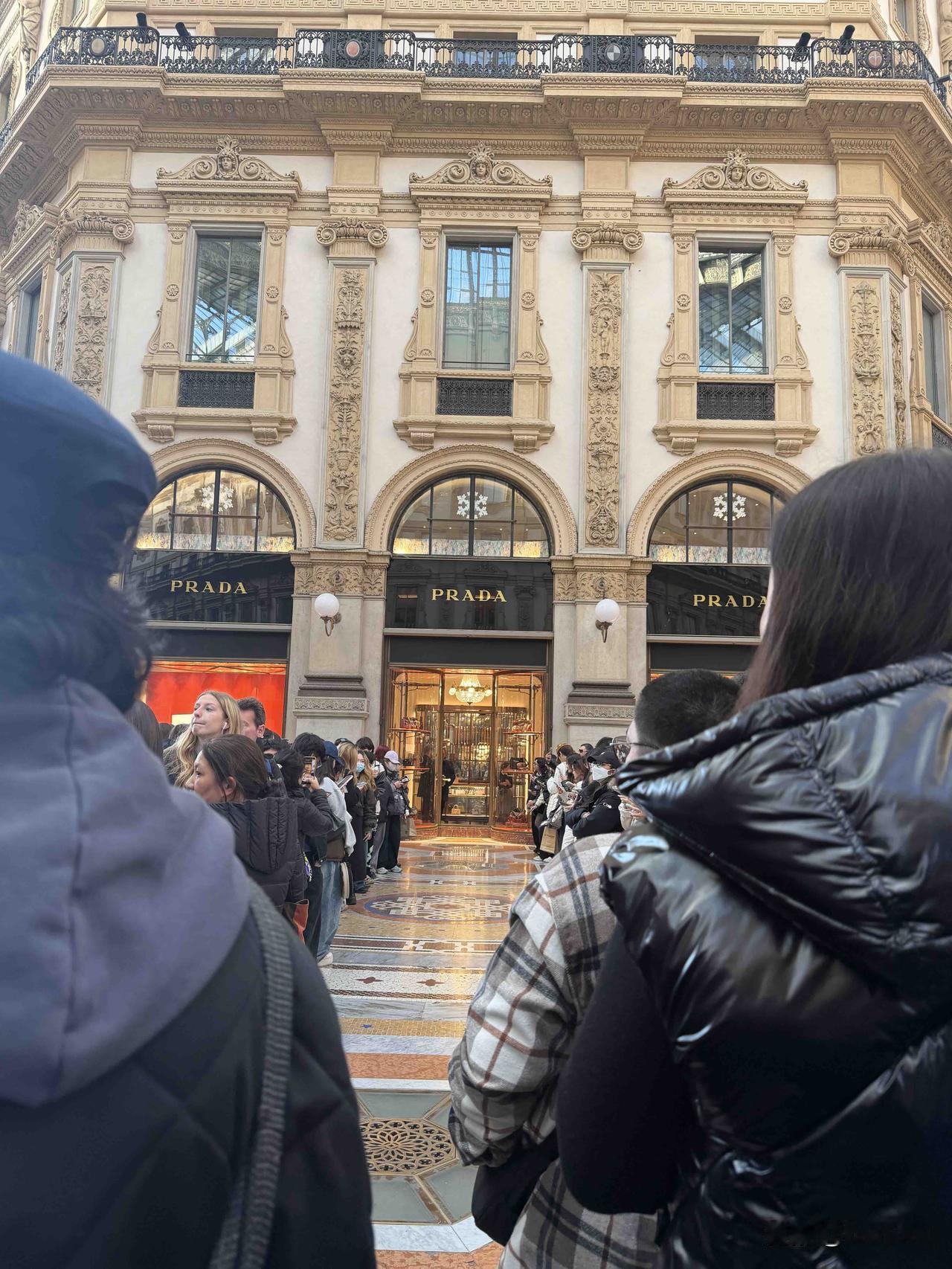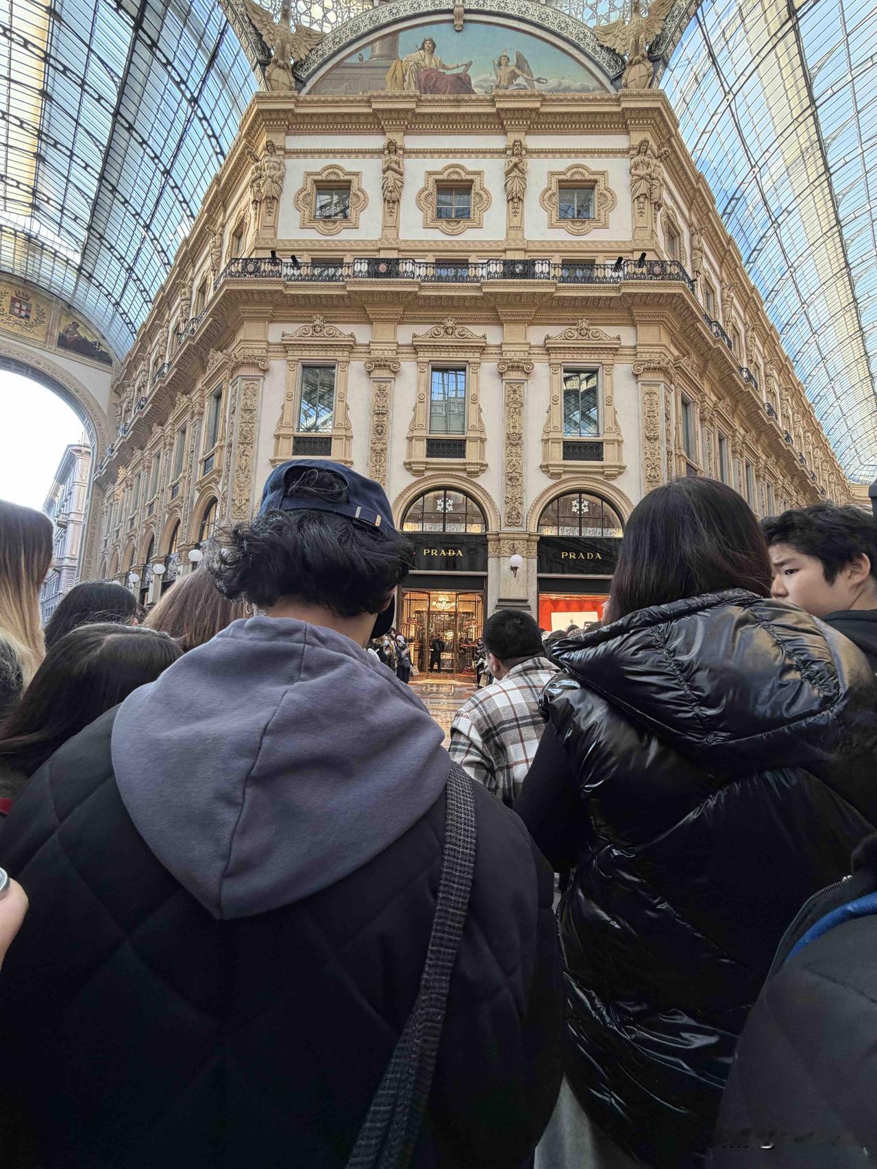 不知道今天是哪位明星在米兰PRADA,门口聚集了好多粉丝。