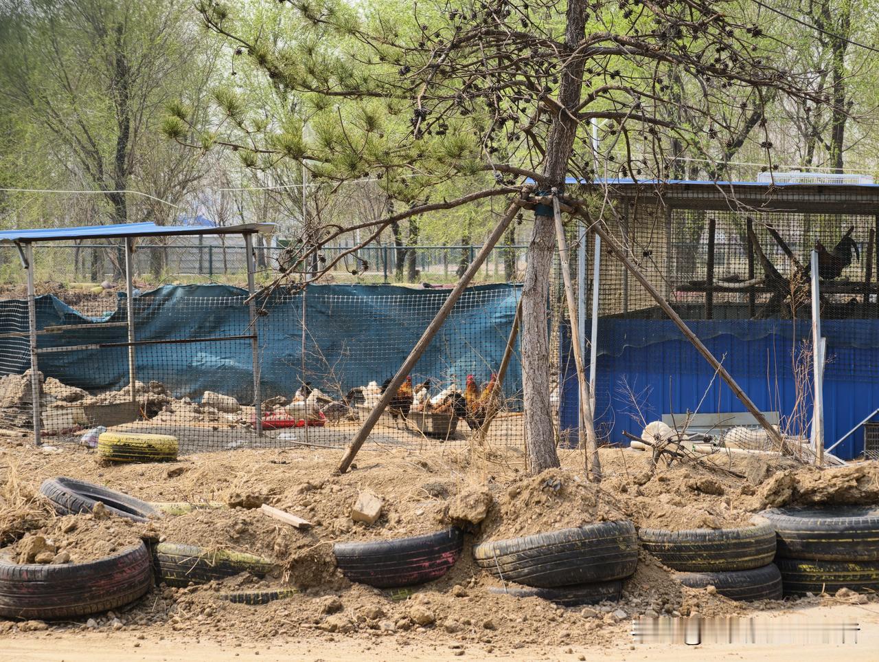 原本的卡丁车赛道旁边已经建起了鸡舍,赛道也成为了鸡的游乐场。
