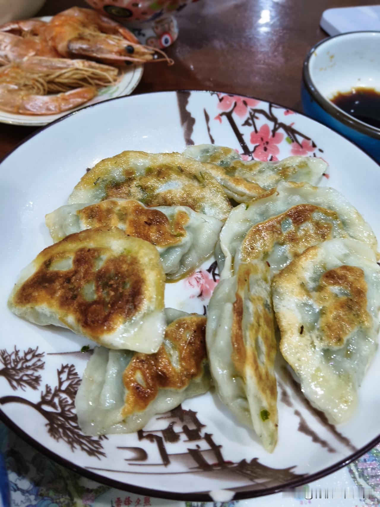 煎了一盘饺子,就着香椿芽咸菜。