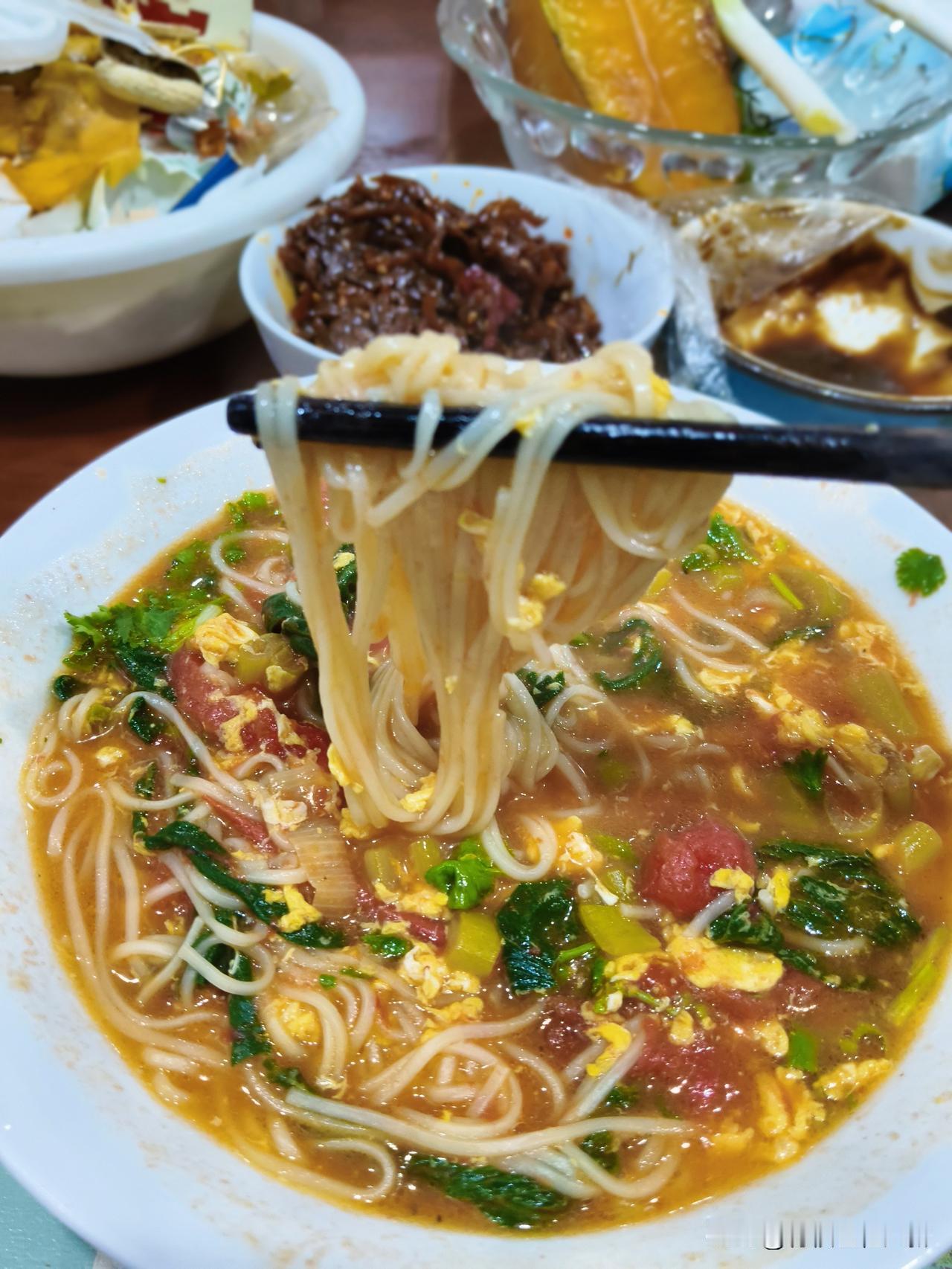 香喷喷,热乎乎,酸溜溜,一大碗面条吃下去,舒服多了。