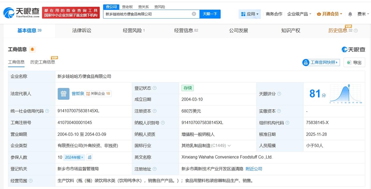 天眼查经营风险信息显示,近日,新乡娃哈哈方便食品有限公司新增一则注销备案公告,注销原因为决议解散。
