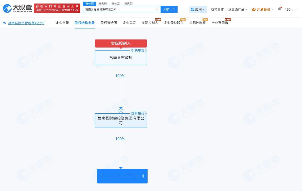 天眼查App显示,基地建设公司莒南县投资管理有限公司成立于2019年5月,法定代表人为孙钦淑,注册资本1亿人民币,经营范围包括土地使用权租赁、土地整治服务、以自有资金从事投资活动等,由莒南县财政局旗下莒南县财金投资集团有限公司全资持股。