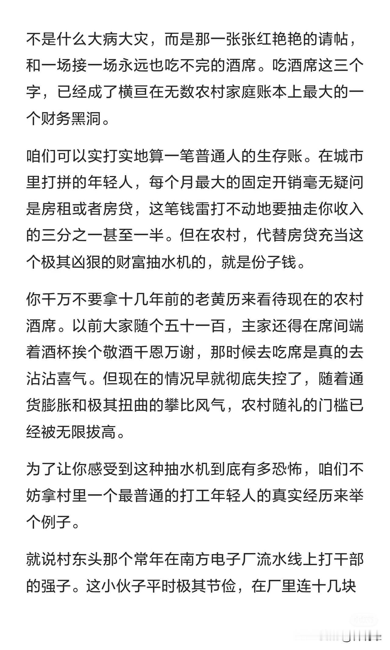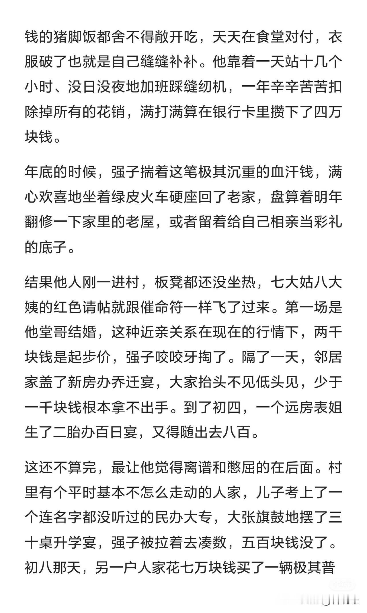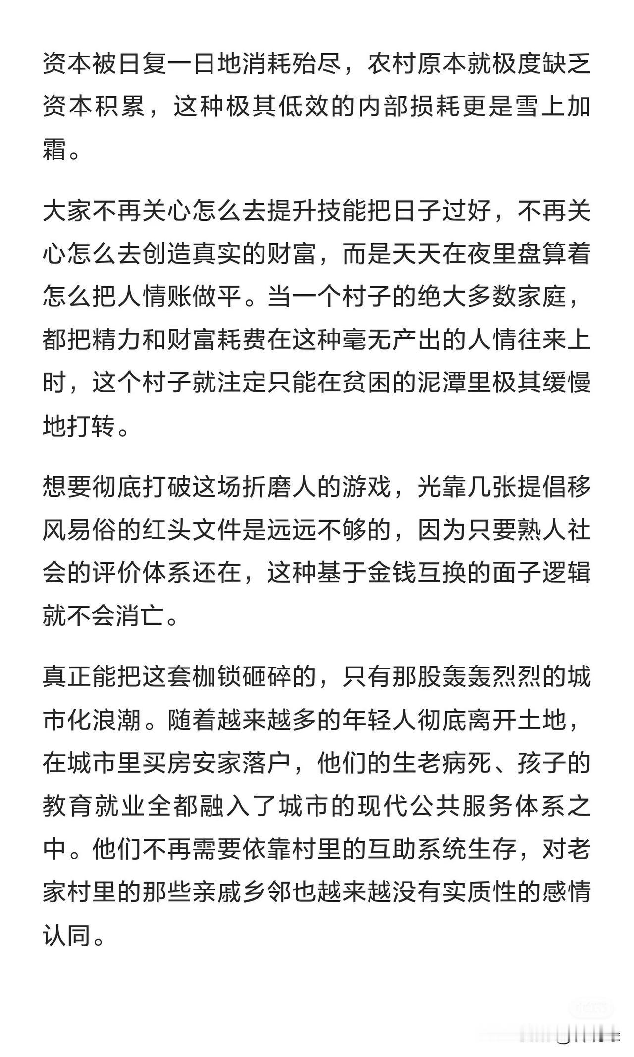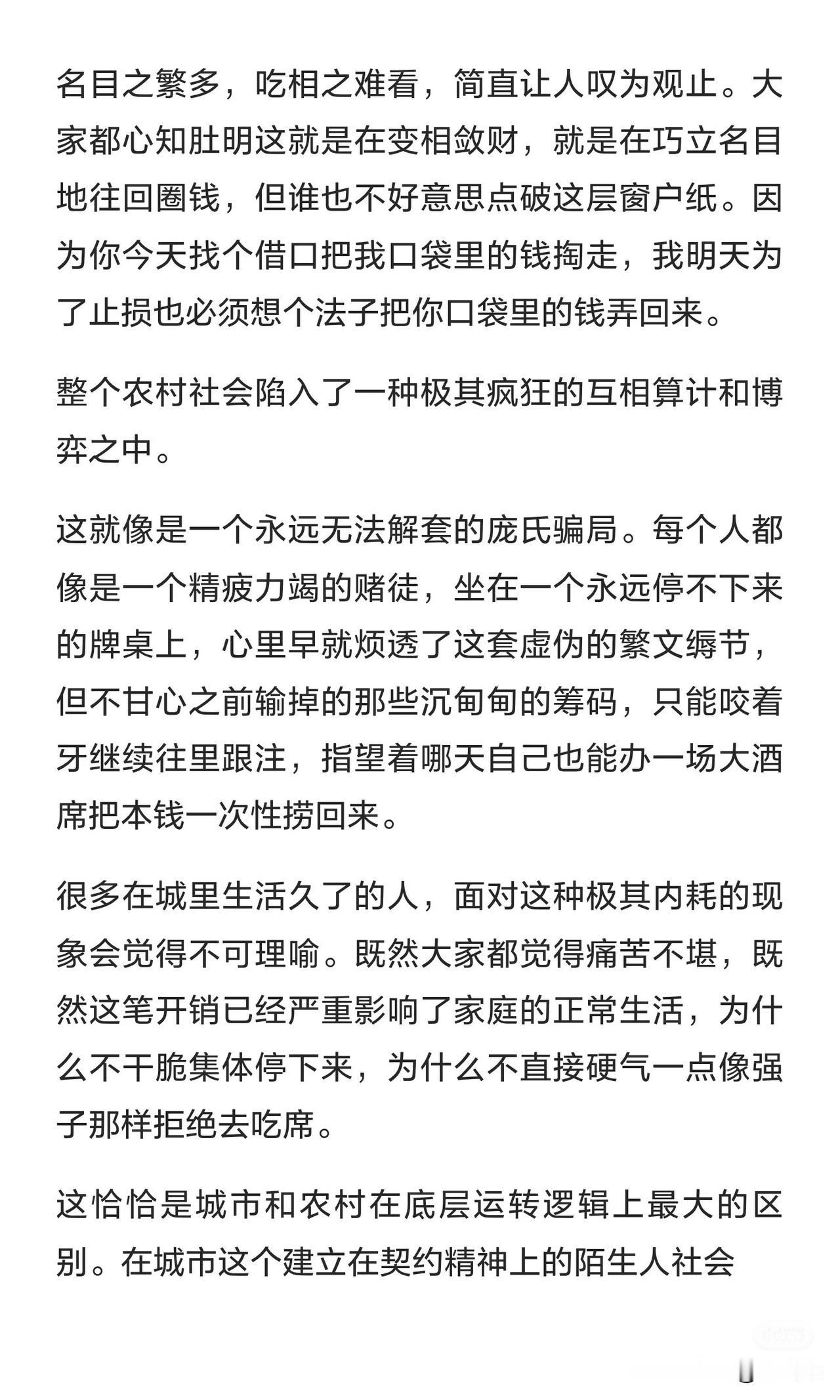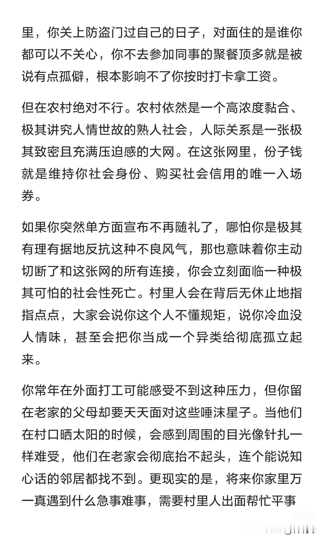 现在我爸去世了,我妈退休金3800多,一个月人情至少要去掉三分之一,这就是回农村的代价。