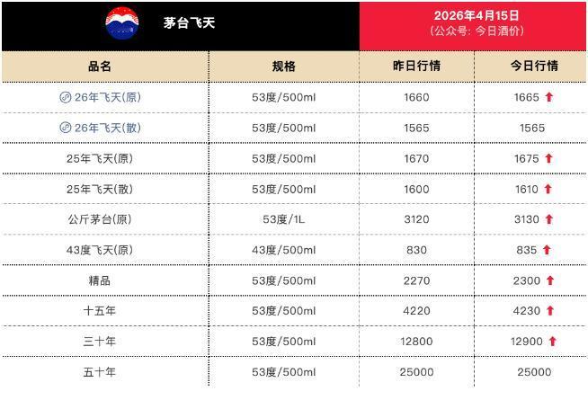 据今日酒价平台数据,茅台飞天系列酒批价几乎全线上涨,可能是刺激贵州茅台股价上涨的一个因素。