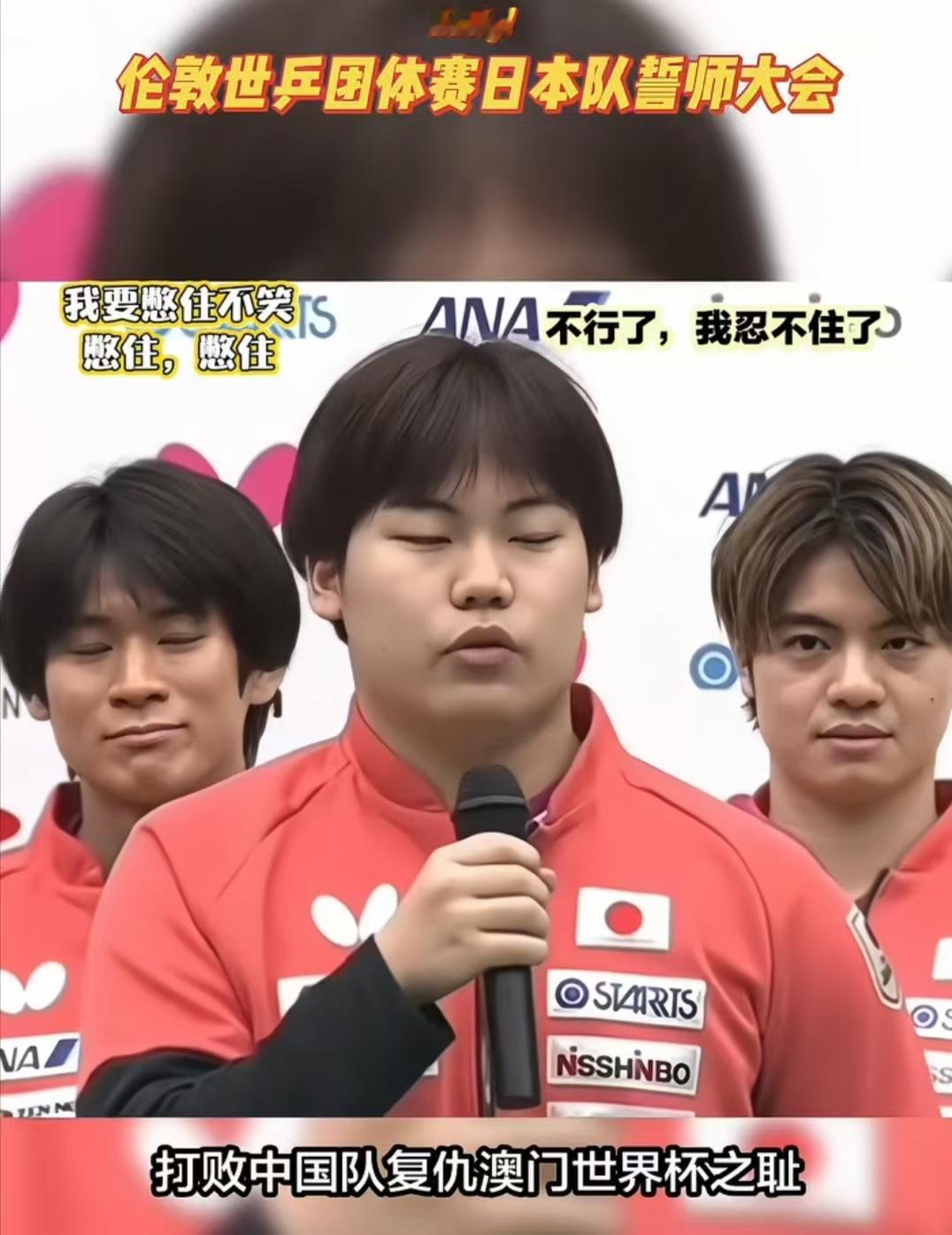 现在松岛辉空是日本乒乓球队最有冲劲的运动员了。可惜,队友都不是看好他。当他发誓要在团体赛中打败王楚钦时,后面的两位队友都失去表情管理了,户上隼辅先是憋笑,接着闭眼,最后尴尬到嘴眼一起紧闭着。右边的宇田听到他说要复仇,笑得嘴巴都张开了。
