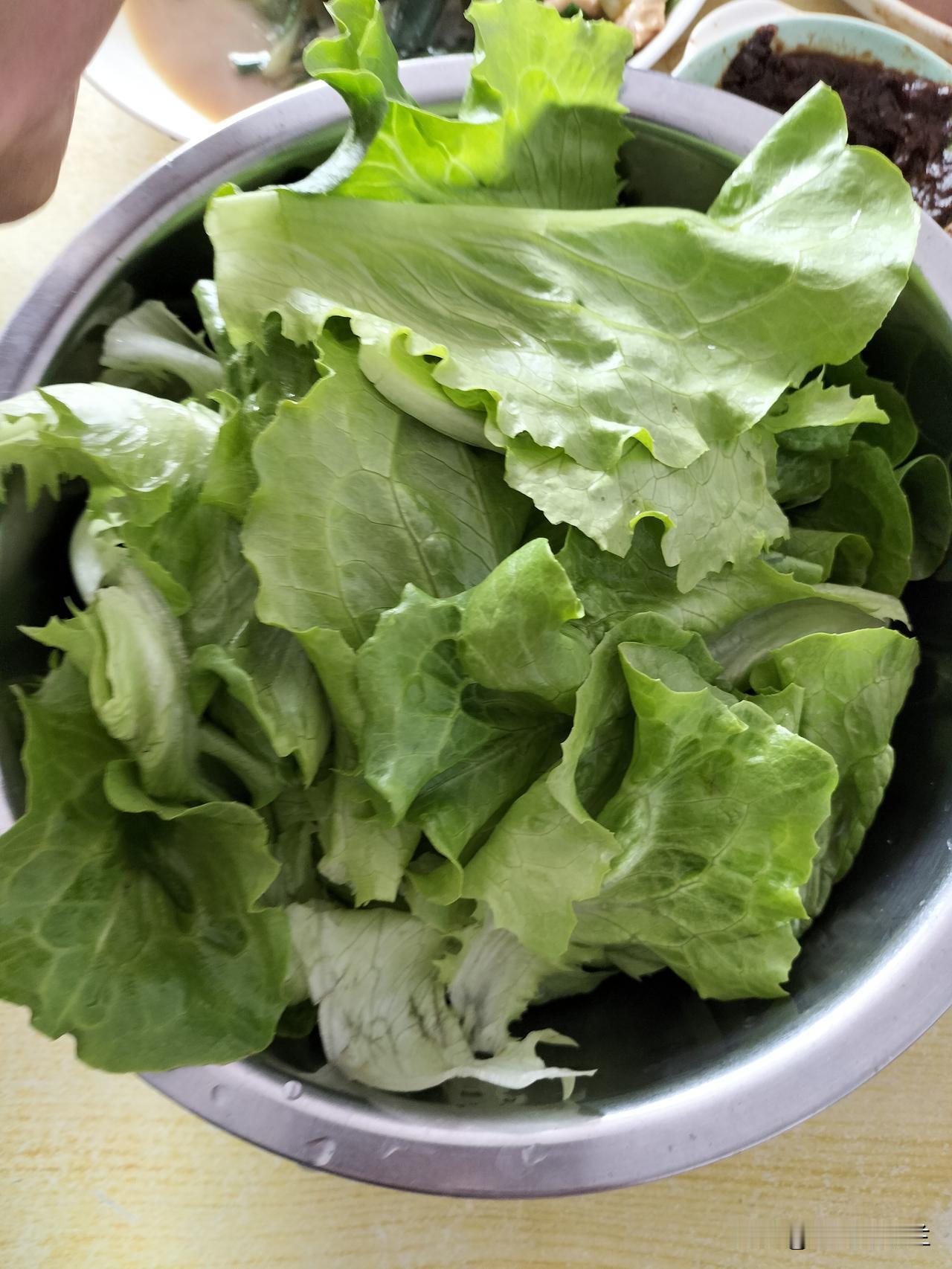 菜园里掰了一把生菜,这个时候的生菜特别好吃,去年秋天栽了几棵生菜,没想到春天长得特别旺,现在每天都掰一把生菜蘸酱吃,生菜是又脆又嫩又甜。