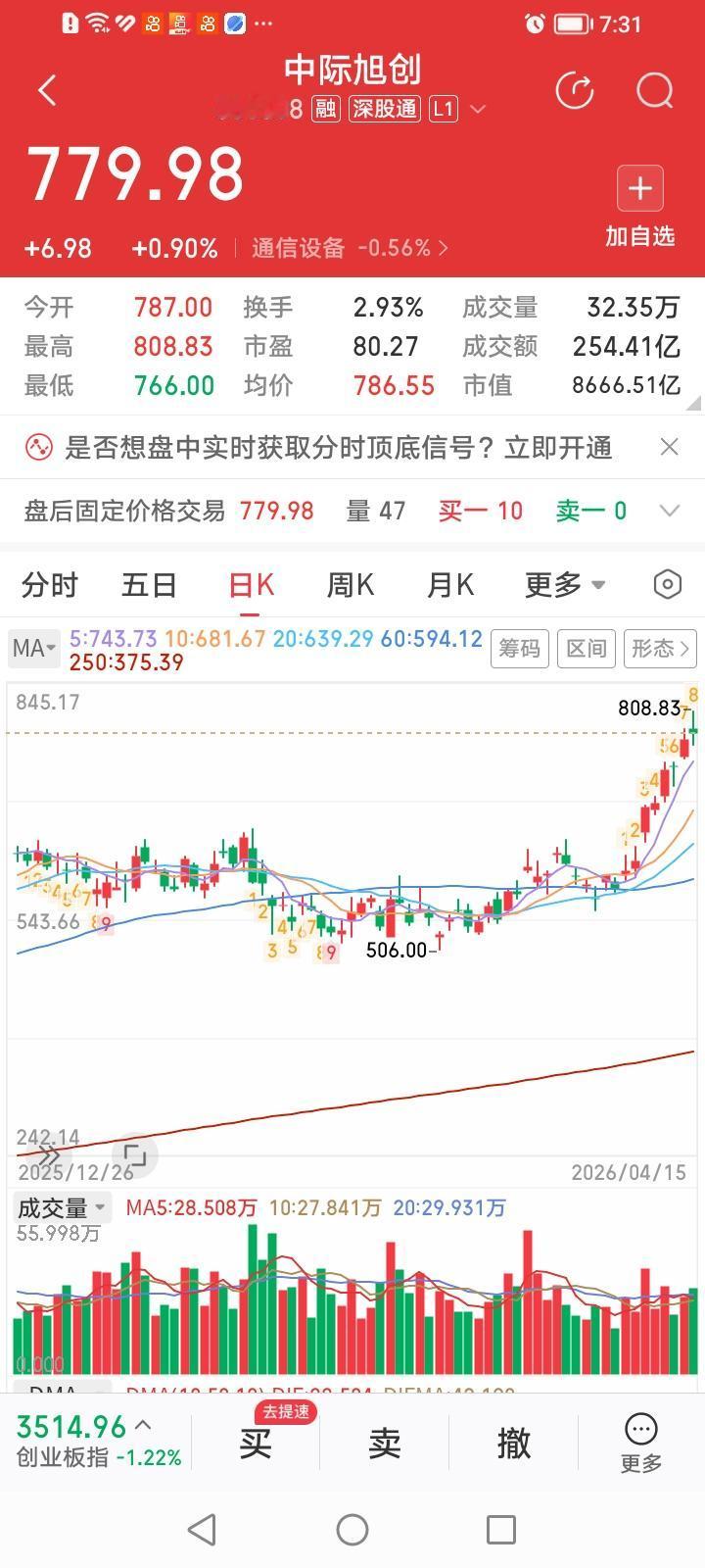 易中天概念股中的新易盛和天孚通信今天收盘都大跌4%以上,唯有中际旭创屡创新高,屹立不倒,如此示强,完美画线,主力意欲何为?主力在高位能将烫手的筹码倒腾给小散,画线神功不高能行吗?