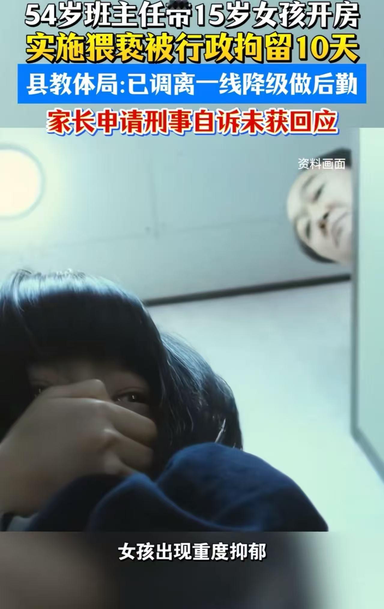 54岁的班主任,本应是学生的引路人,却将魔爪伸向15岁的花季少女;事发后,仅被“降级做后勤”,仍在校园内接触学生——这不仅是处罚过轻,更是对受害者的二次伤害,对其他学生的潜在威胁!