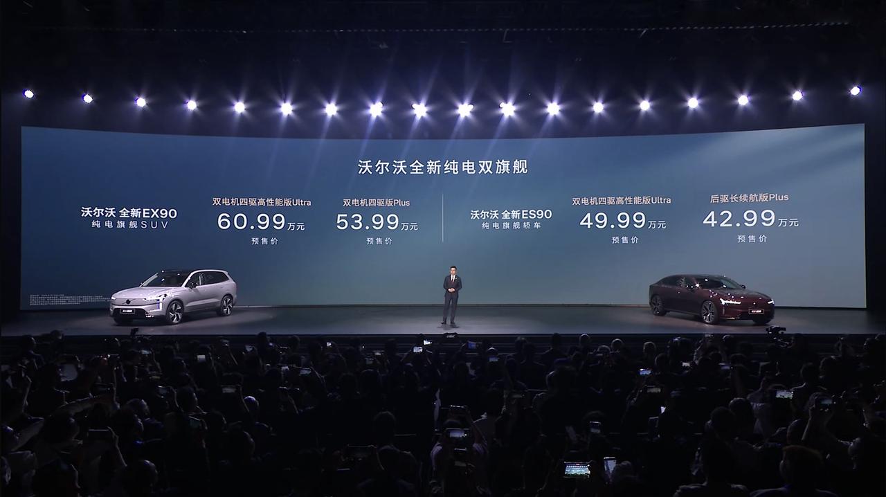 近日,沃尔沃汽车99周年庆典暨新品发布会的召开可以说引起了广泛热议,本次发布会上,沃尔沃全新纯电旗舰SUV EX90和全新纯电旗舰轿车ES90正式开启预售,预售价分别是53.99万起和42.99万起。那么,这两款旗舰车型表现如何呢?