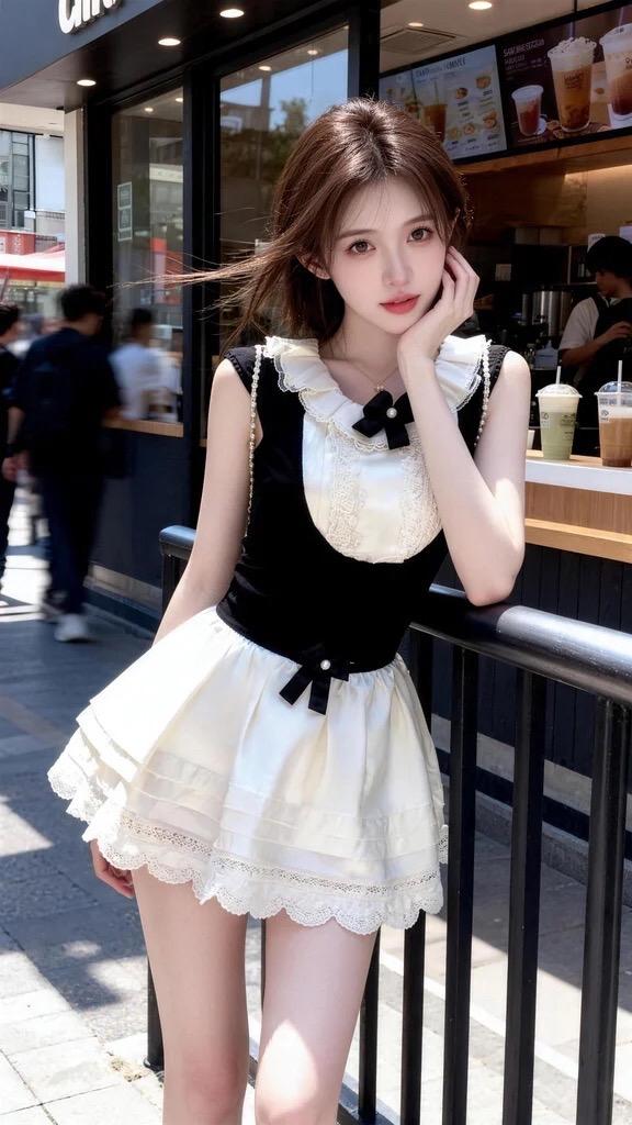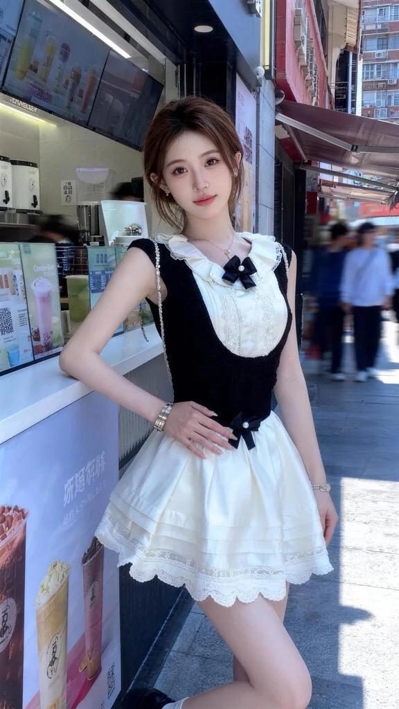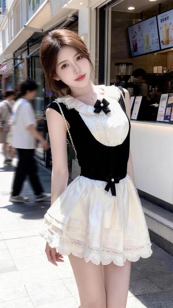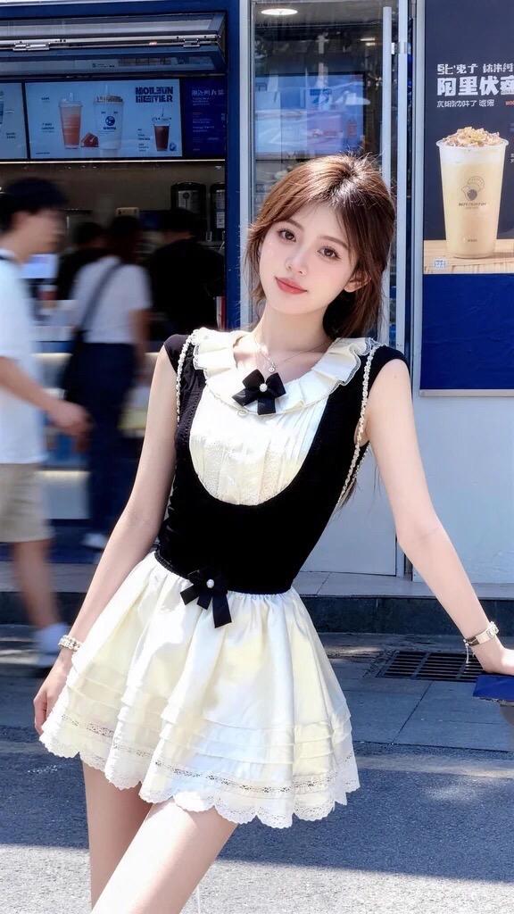 y甜甜的小裙裙 甜妹小白裙 街头甜心风