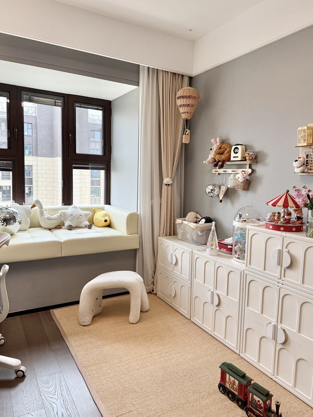 把书房改成了衣帽间,客卧做成儿童学习游玩房😃