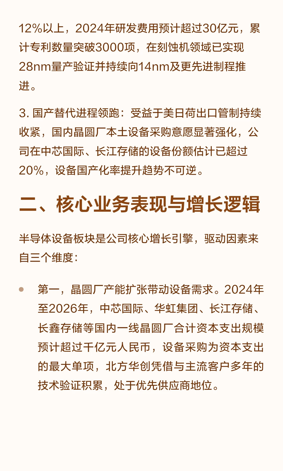北方华创估值核心取决于三大关键变量:先进制程设备量产验证进度、国内晶圆厂资本开支执行节奏、以及半导体板块市场估值中枢的系统性变化。