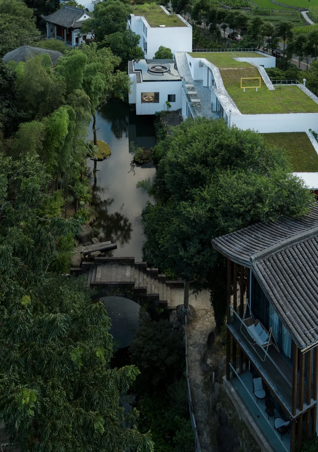🌊白墙青瓦,溪水绕园,扛起锄头挖几颗鲜笋,远山如黛,一层叠着一层,和蓝天上几缕白云眷恋在一起。平淡的诗意,寻常的日子。