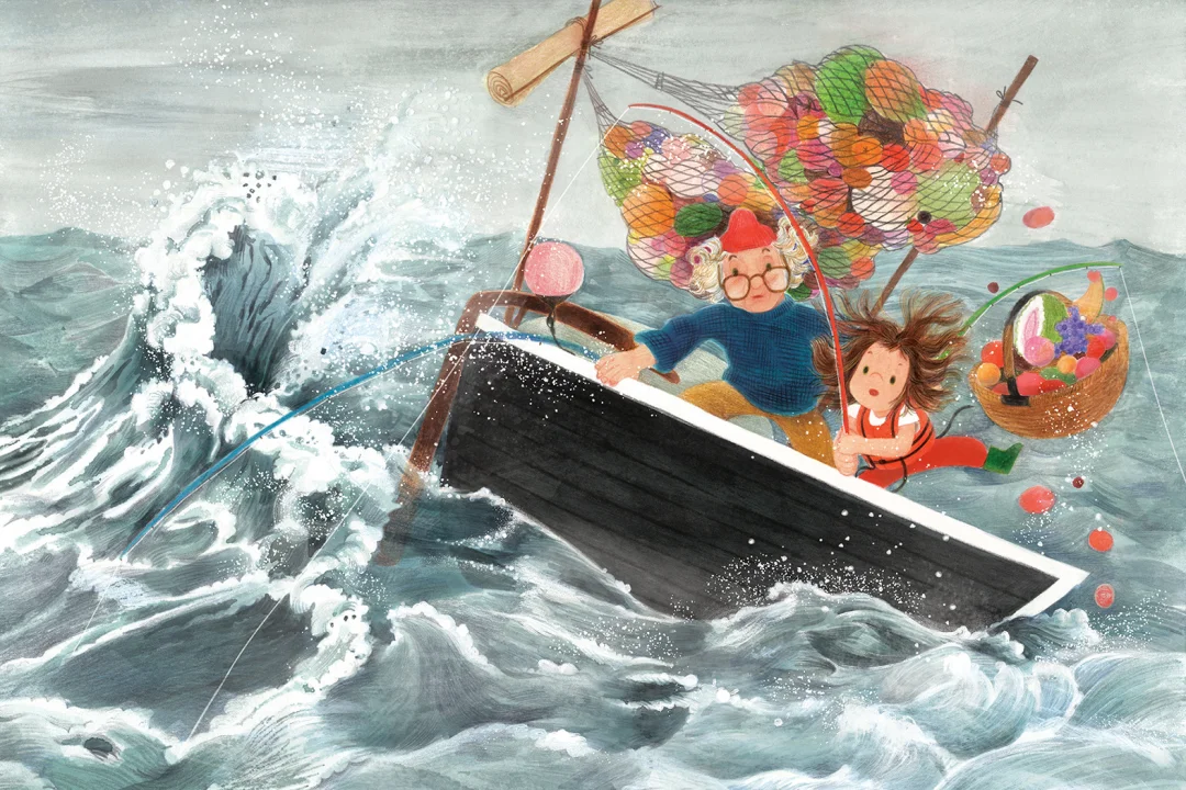 她们驾着一艘小船出发了,只带着勇气、毅力和一个熟透的桃子作鱼饵。但大鱼那天没有出现,第二天也没有。每次,玛丽娜都仔细聆听大鱼尾巴的嗖嗖声,但每次桃子上都没有任何咬痕。奶奶始终确信她们会抓到它,但玛丽娜却不再那么确定了。