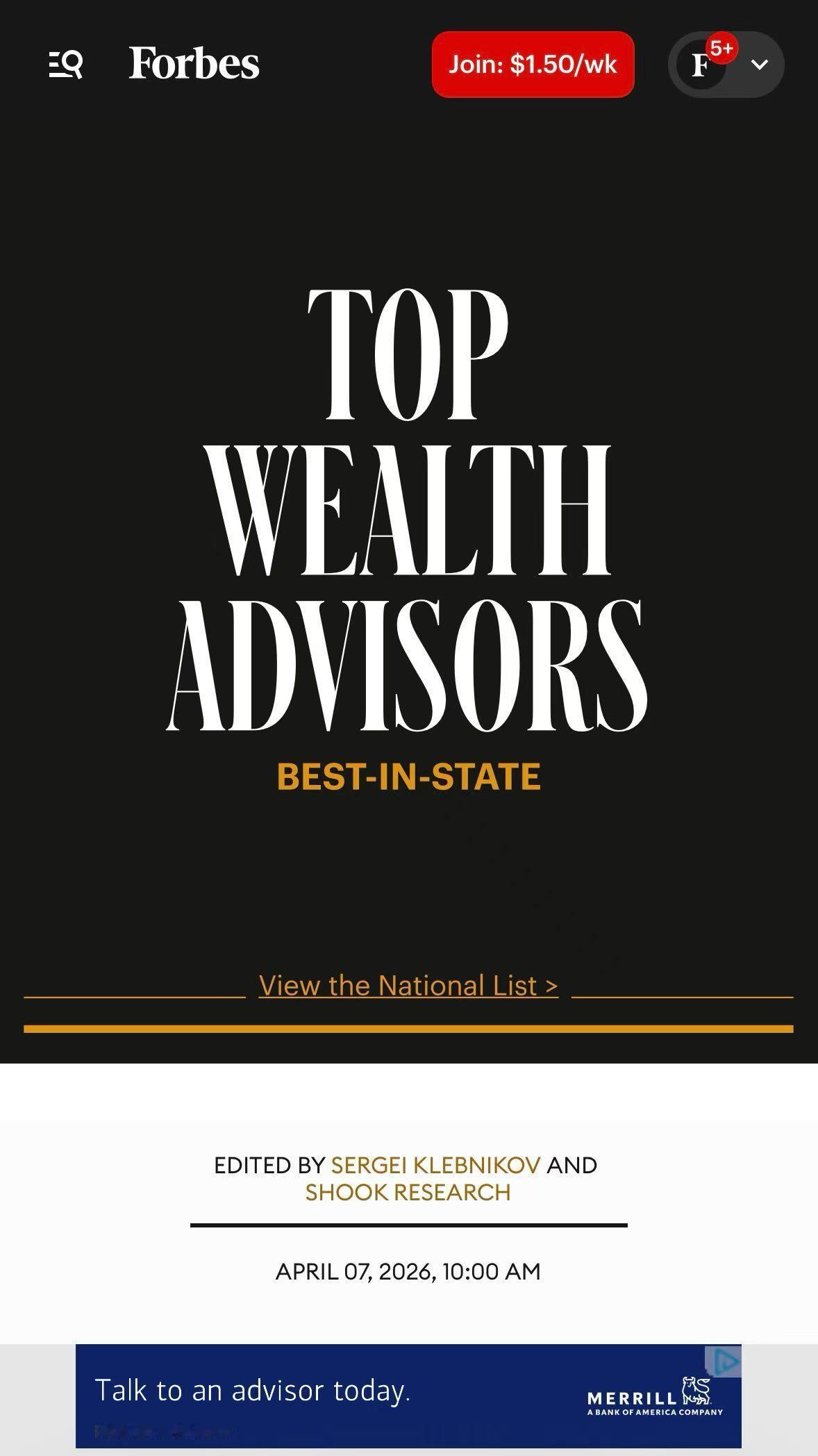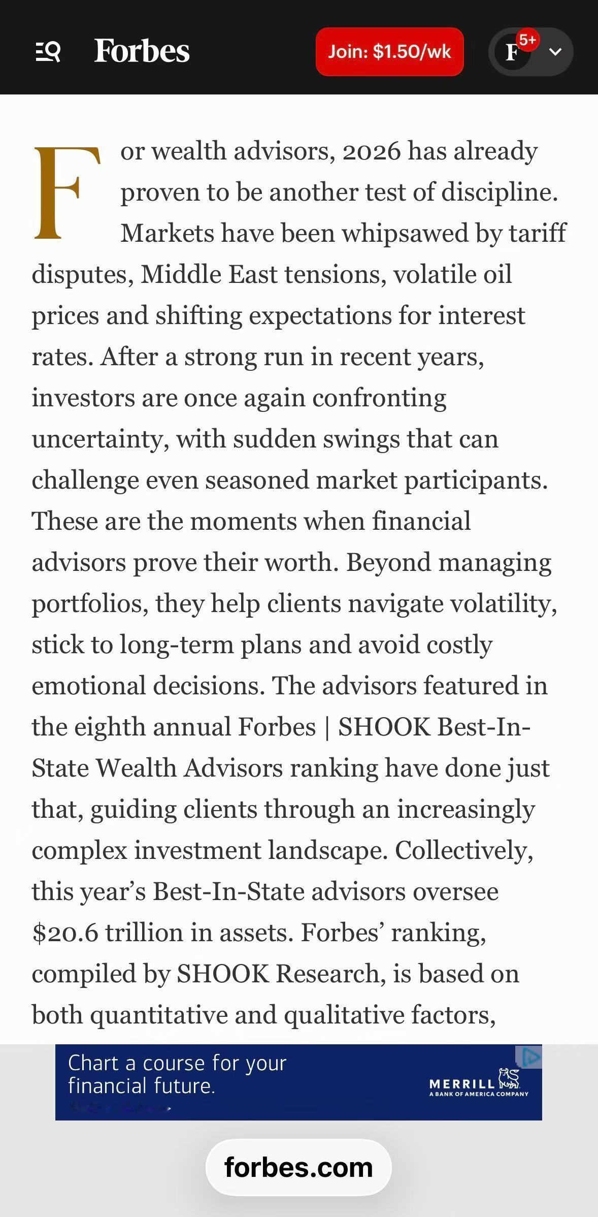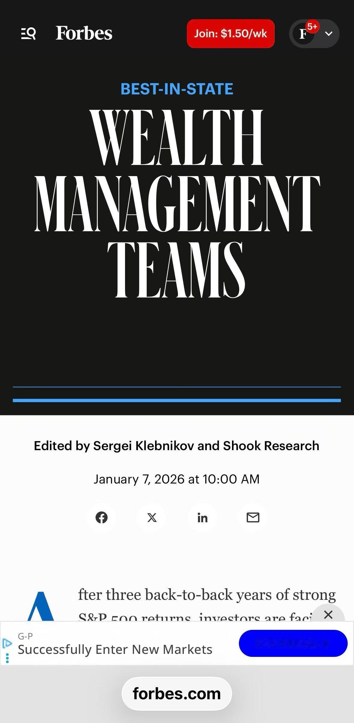 荣登2026福布斯全州顶尖财富管理团队权威榜单