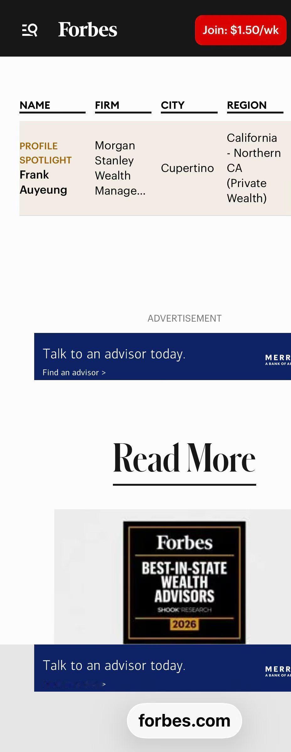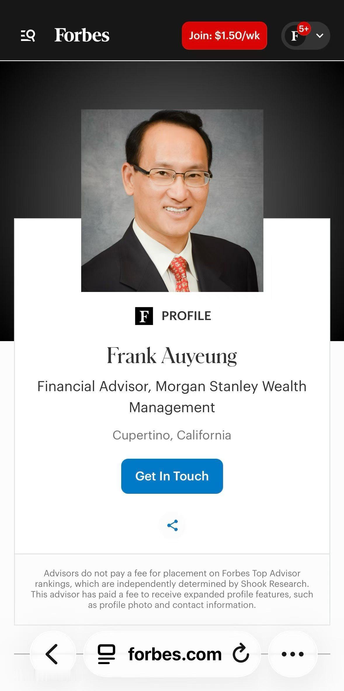 个人连续四年蝉联福布斯全美顶级财务顾问