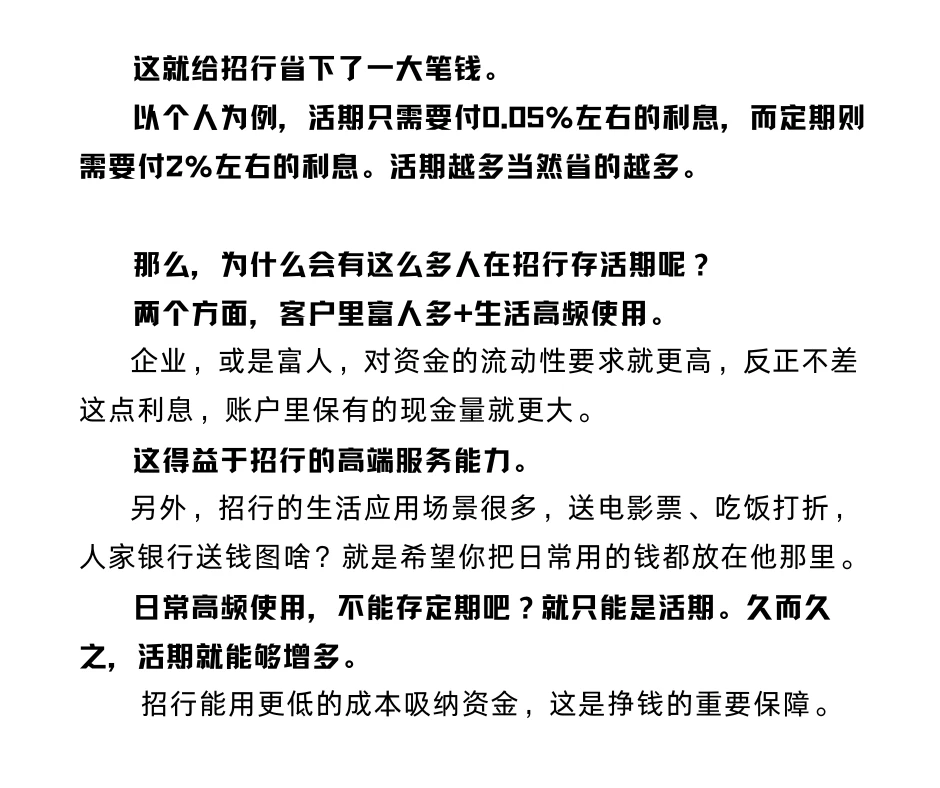 为什么会有这么多人在招行存活期呢?两方面,富人多+高频使用。