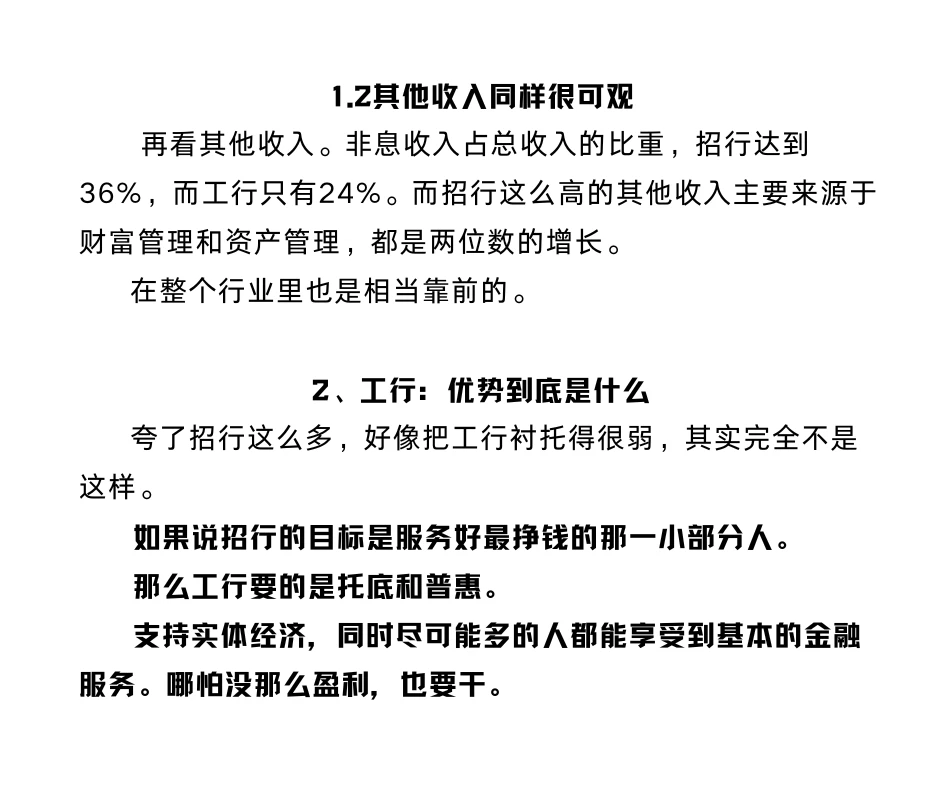 其他收入,招行达到36%,而工行只有24%。财富管理和资产管理,都两位数增长。