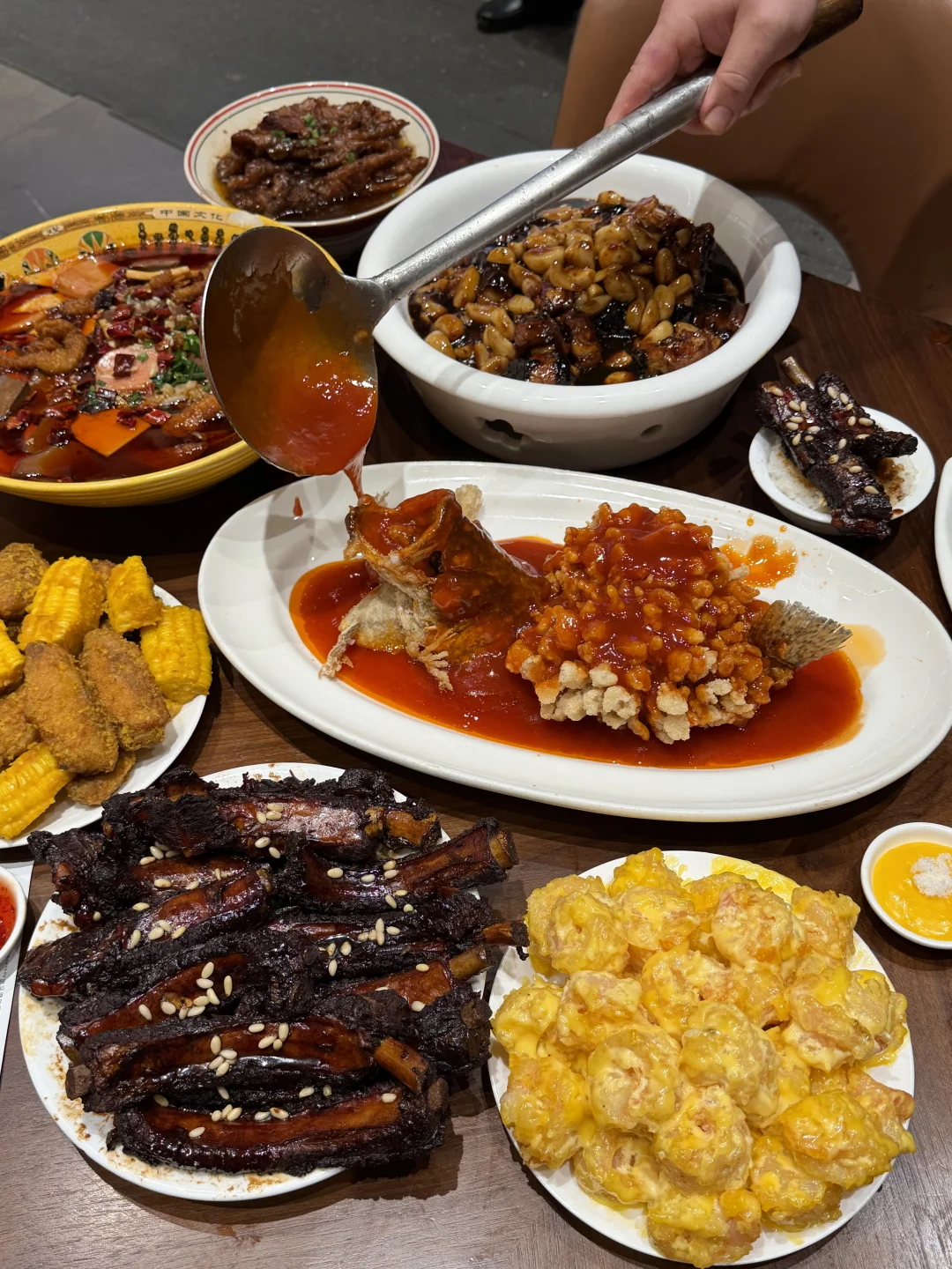 酸菜鱼、蛋黄鸡翅还有金丝蛋黄卷也记得吃!