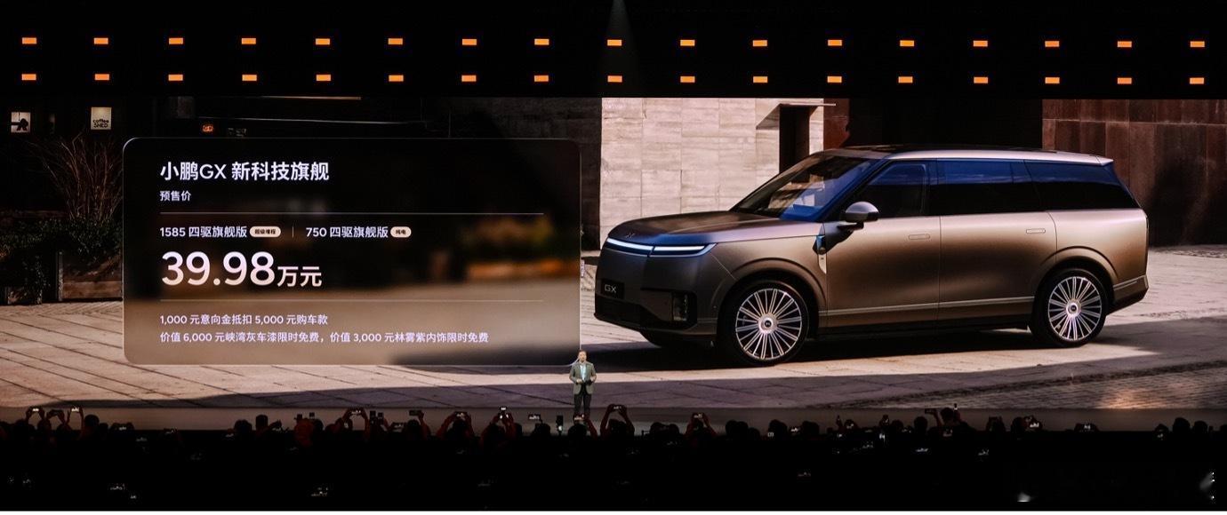 小鹏GX今晚发布了预售价39.98万元,这价格配上配置,确实有点“掀桌子”的意思!!!作为全尺寸旗舰,它直接把飞行汽车的六重冗余安全系统搬上车,转向、制动全备份,安全标准拉满~~线控底盘+后轮转向,5.2米大车转弯半径才5.4米,开起来像小车一样灵活!!!智驾算力干到3000TOPS,XNGP 5.0支持全场景领航,甚至能语音控车挪车~~六座布局第三排能完全躺平,还有AI调光玻璃和车载冰箱,家用属性拉满!!!纯电四驱版750km续航,超级增程纯电续航430km综合续航1585km续航,这估计让友商都感觉到了不小的压力呀!新科技旗舰小鹏GX预售39.98万央视称小鹏GX为科技大成之作