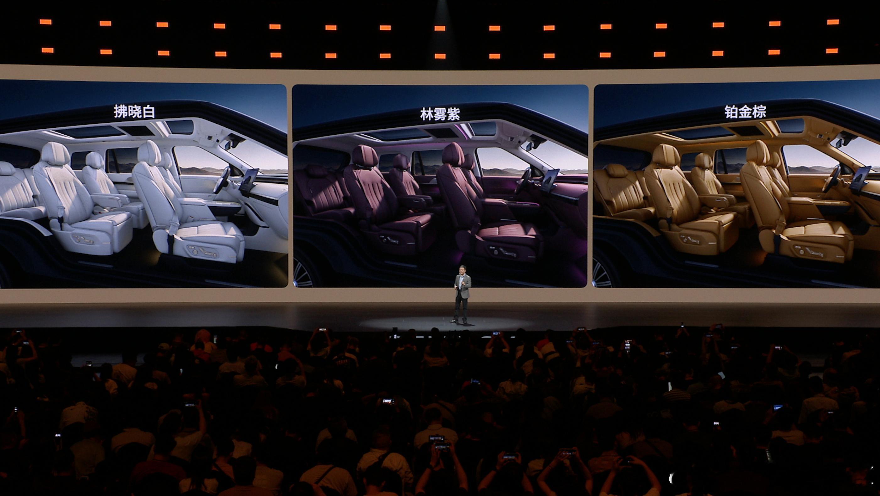 新车长宽高分别为5265/1999/1800mm,轴距达3115mm,体型魁梧。外观采用星环贯穿式灯组与隐藏式门把手,平直的车顶线条保障了车内空间,纯电版还额外配备了前备厢。全系提供5种车身配色。