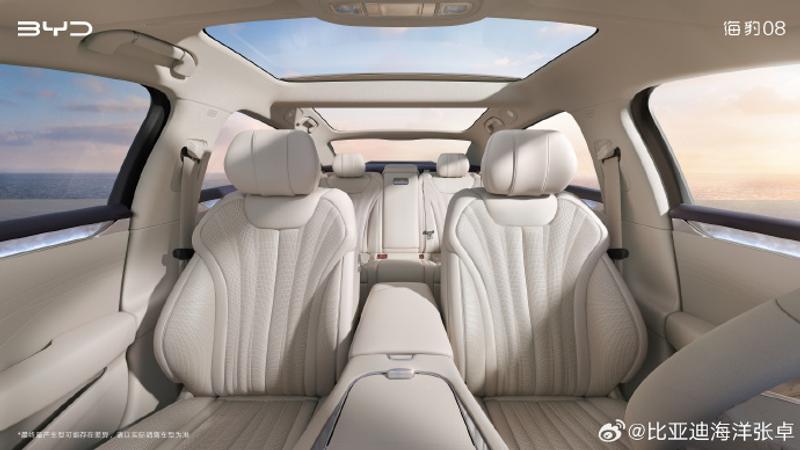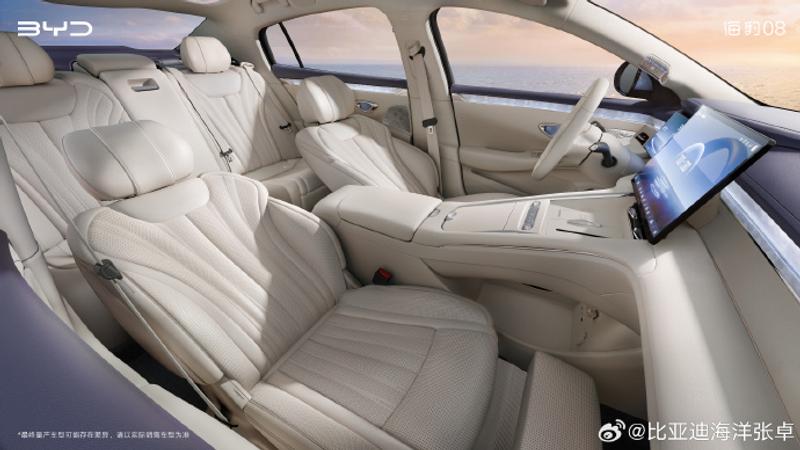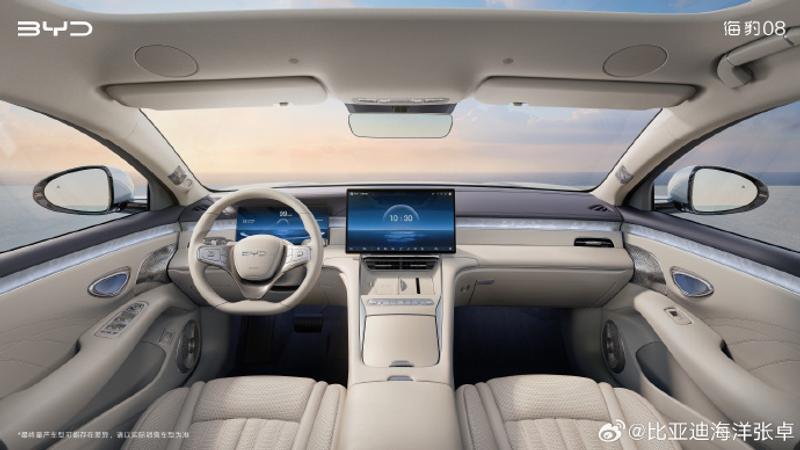易车讯4月15日,比亚迪汽车海洋网销售事业部总经理张卓,在社交媒体发布了比亚迪海豹08内饰官图,新车搭载海洋美学2.0全新旗舰座舱,以“松弛之境+治愈之美”为设计理念。