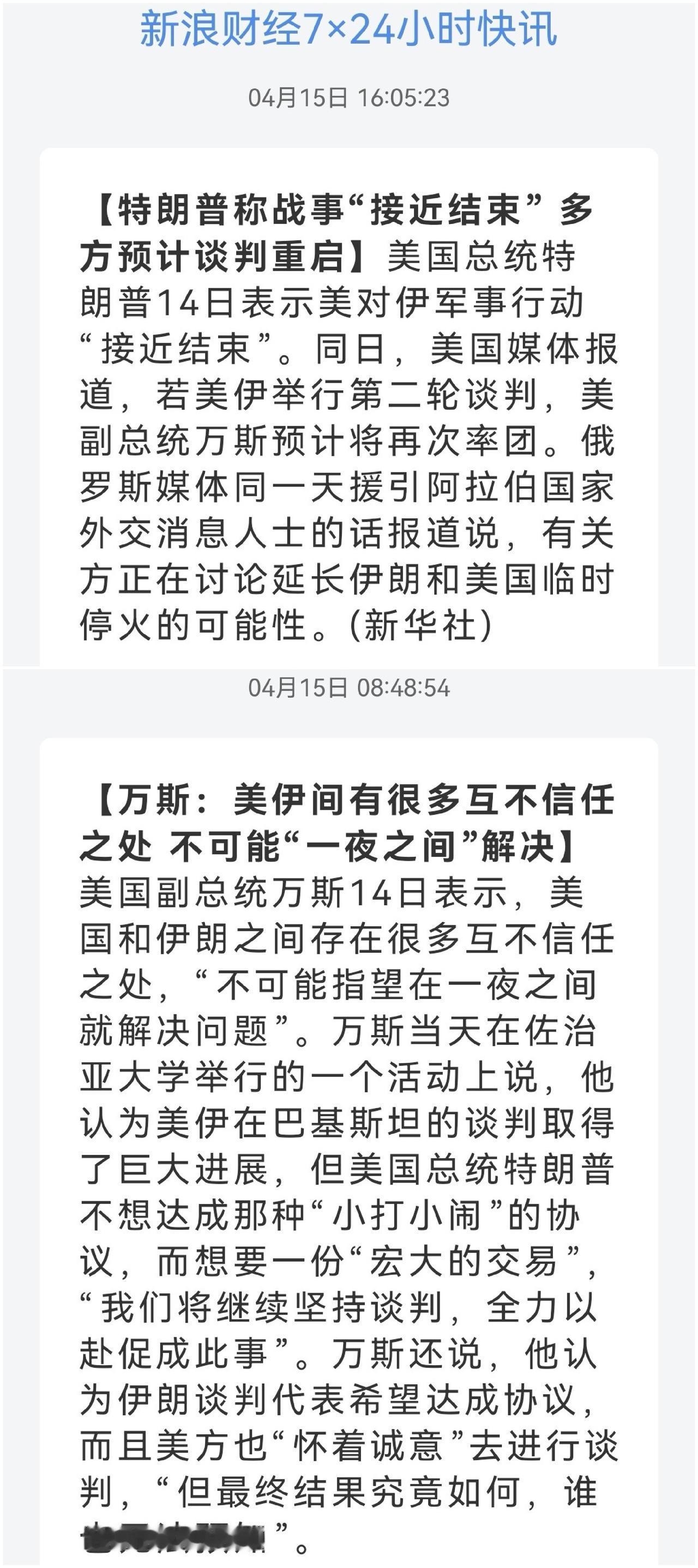 国会早有微词,连支持他的共和党议员也闭嘴不吭声。要不选择不要停战,直接让伊朗投降;暂停再谈判,人家筹码更多了。这也是为什么特朗普想出再封锁海峡,增兵海湾的原因,继续增加筹码,不过锁上加锁已经违背了你部分解除俄伊制裁增加供应的初心。这也是万斯说的,特朗普不想达成那种小打小闹的协议,而想要一份宏大的交易,比如战争之前,伊朗提供的小恩惠,油气矿产合作、购买波音等。必定会加上这些,否则在国会交不了差。现在伊朗还愿意吗。
