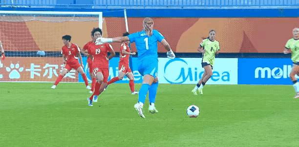 U20亚洲杯,朝鲜女足球员用头拦下对方门将大脚,冲刺半场射入空门。 这球看着都疼