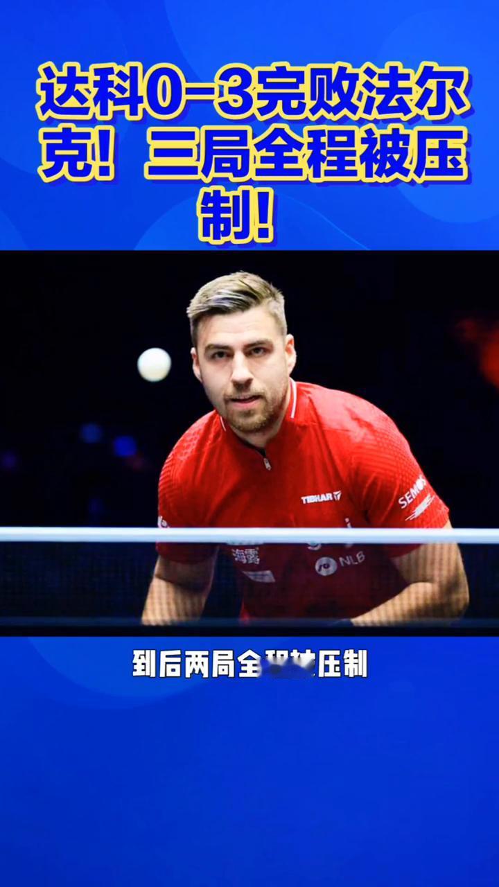 达科0-3完败法尔克,三局全程被压制。说一个扎心的事实,达科这场球直接被法尔克打崩了,三局全输,全程毫无还手之力。