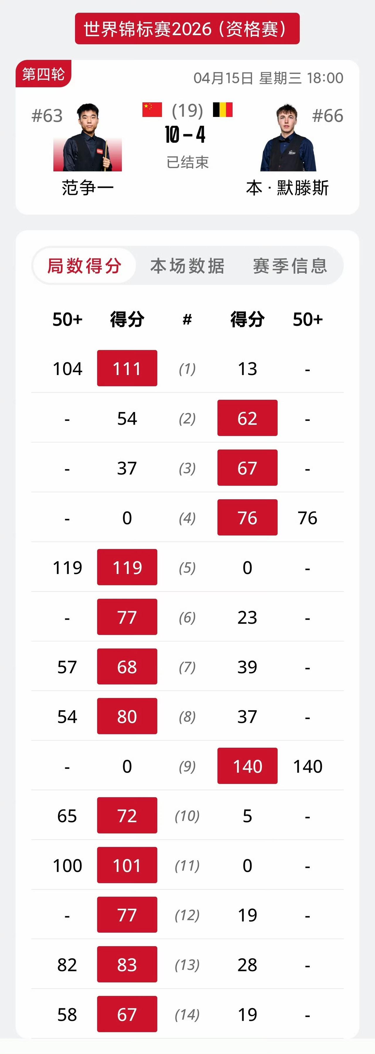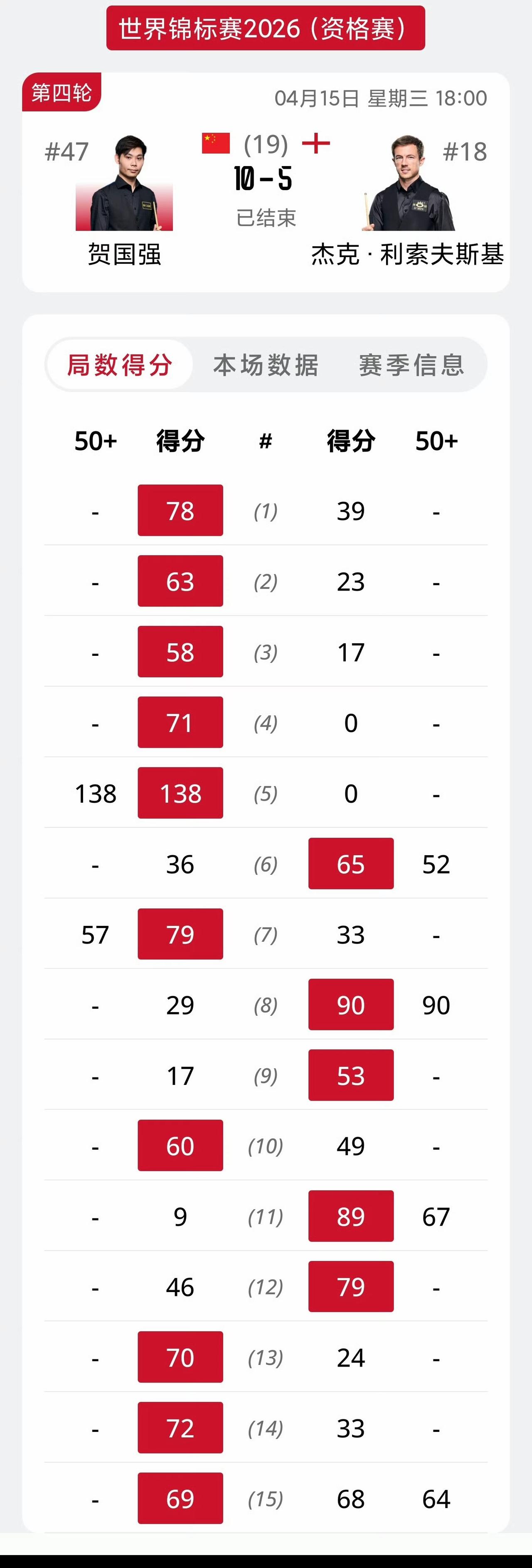 中国球员大获全胜,目前确定有6位球员晋级世锦赛正赛,剩下的徐思2-7落后咖喱,目前9-8先拿到赛点。