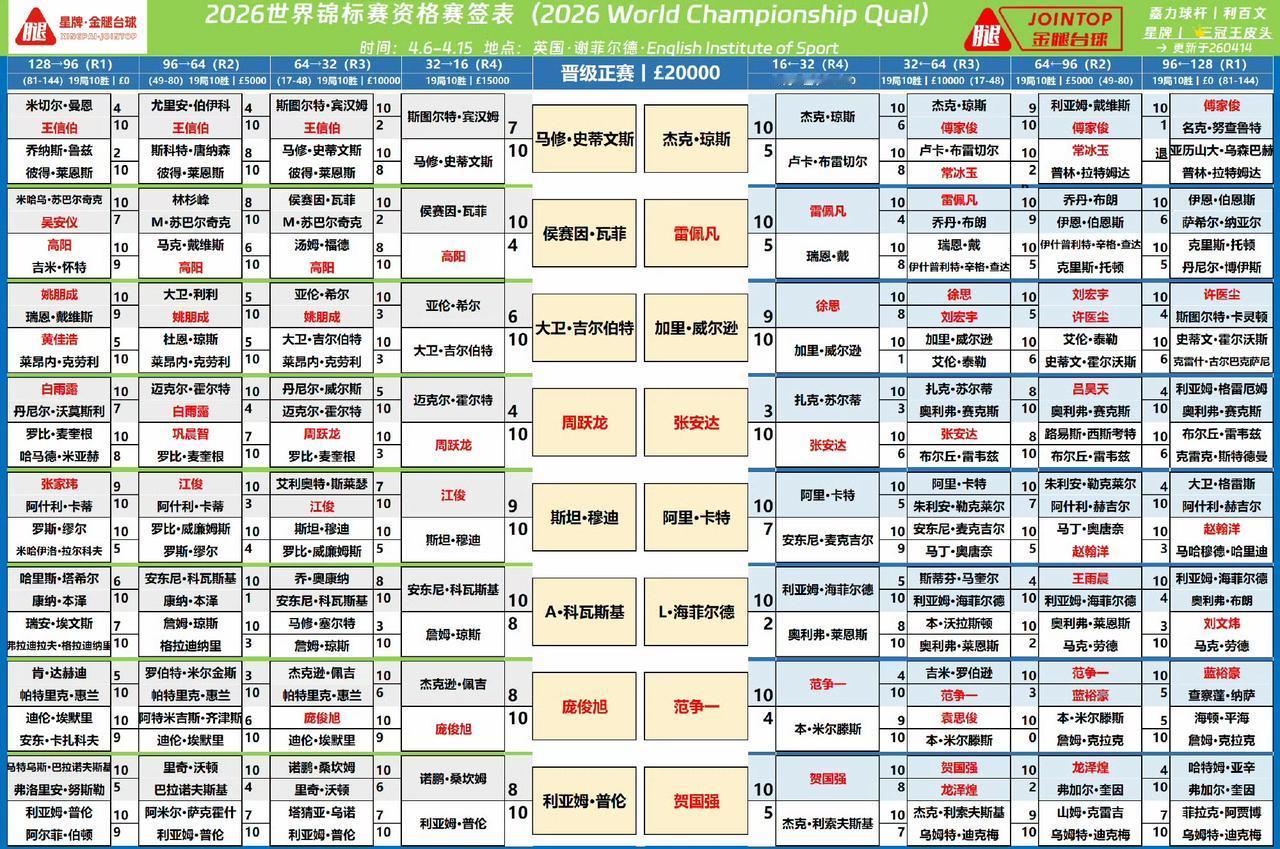 一觉醒来,竟有6位中国球员晋级世锦赛正赛,11位中国球员参加正赛。上届世锦赛是10位。令人意外的是布雷切尔、利索夫斯基未能晋级。