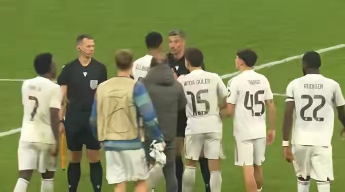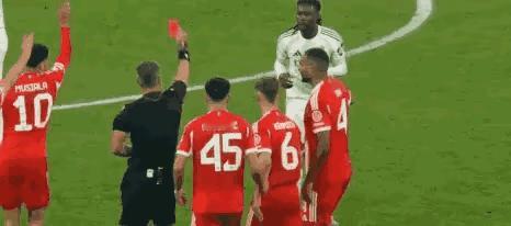 皇马3-4不敌拜仁,但皇马球员非常不服气,赛后纷纷围攻裁判进行抗议。主裁判温契奇刚刚吹响比赛结束的哨音,皇马球员贝林厄姆和维尼修斯等多名球员就在场上对主裁判进行抗议,纷纷对卡马文加的两黄变一红的判罚表达不满,被替补换下的居莱尔更是在更衣室球员通道门口对主裁判出言不逊,导致吃到红牌。皇马球员确实有理由表达不满,卡马文加的第二张黄牌属实过于严厉,在皇马当时场上3:2领先,总比分4:4打平之时,比赛已经进行到第86分钟,主裁判对身上已有一张黄牌的球员,因为他抱球阻止对方快攻出示第二张黄牌,虽然在执法上有依据,但这张红牌却毁掉了整场比赛的平衡,也导致皇马被淘汰。拜仁4比3皇马