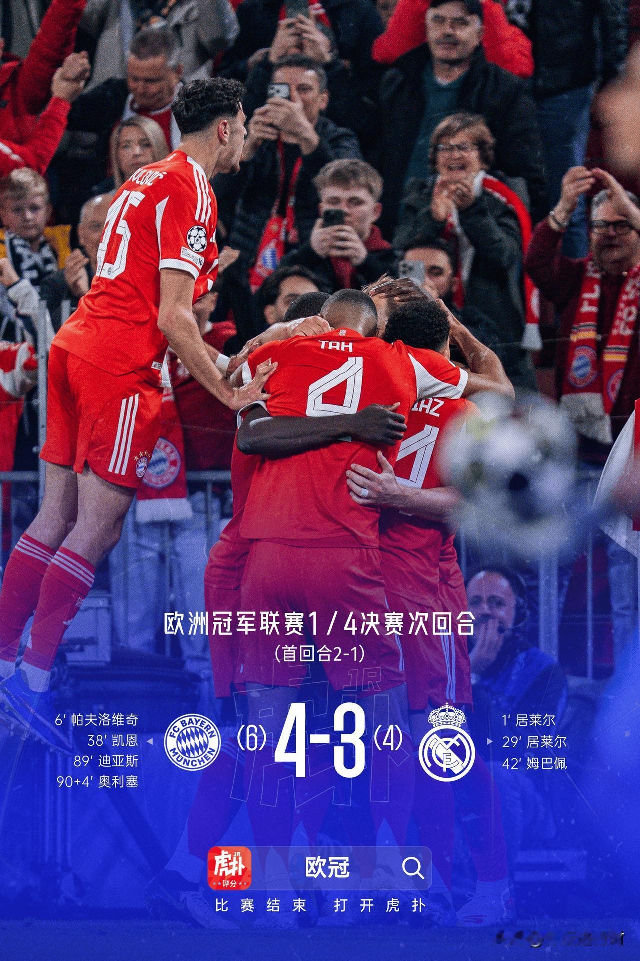 拜仁慕尼黑4:3皇家马德里 总比分6:4