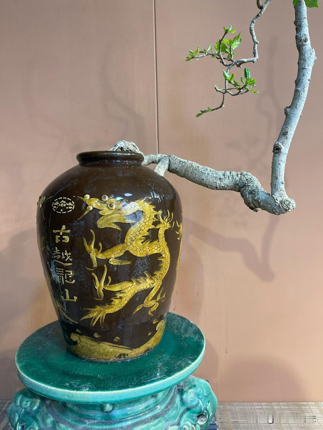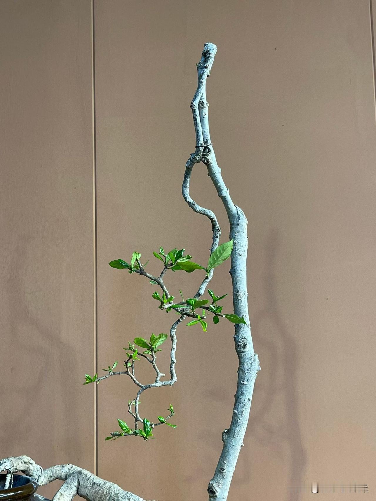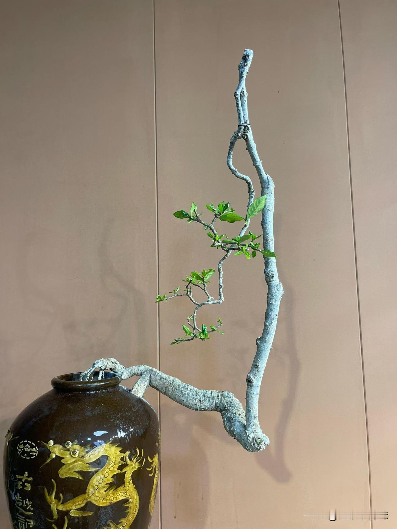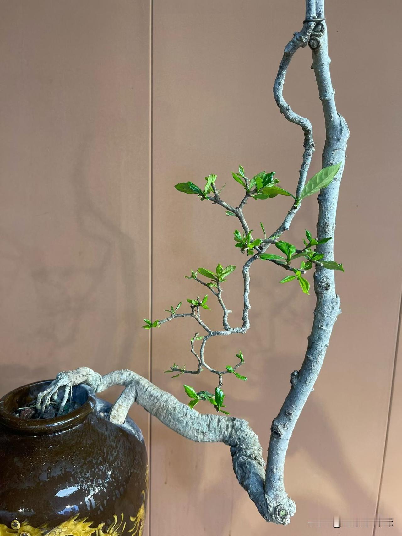 四季榄叶栀子花,肉桩花瓶艺术年功盆景。盆景