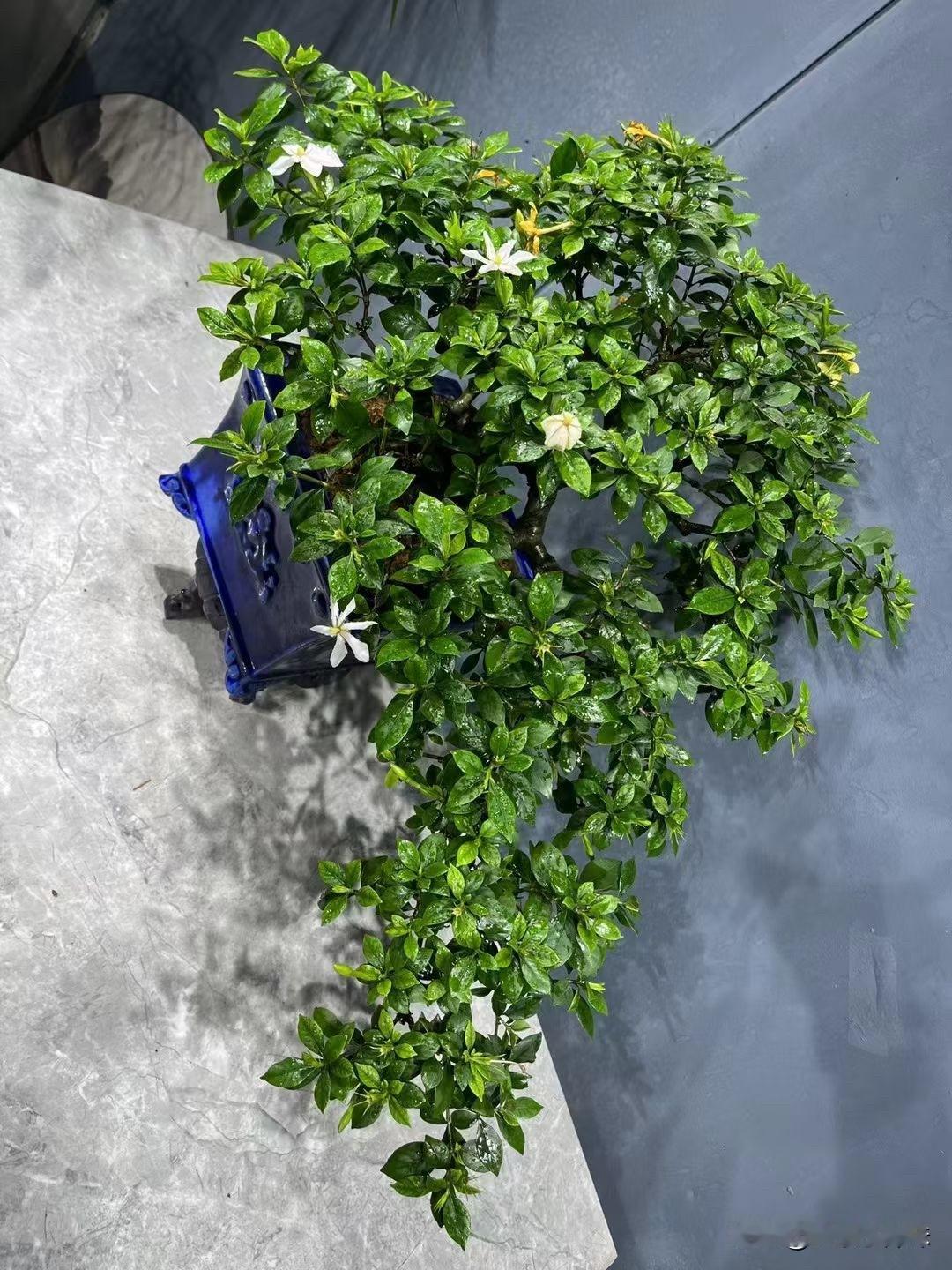 绿叶扶疏映,盆栽入画来。榄叶栀子花栀子花技巧 四季栀子花老桩