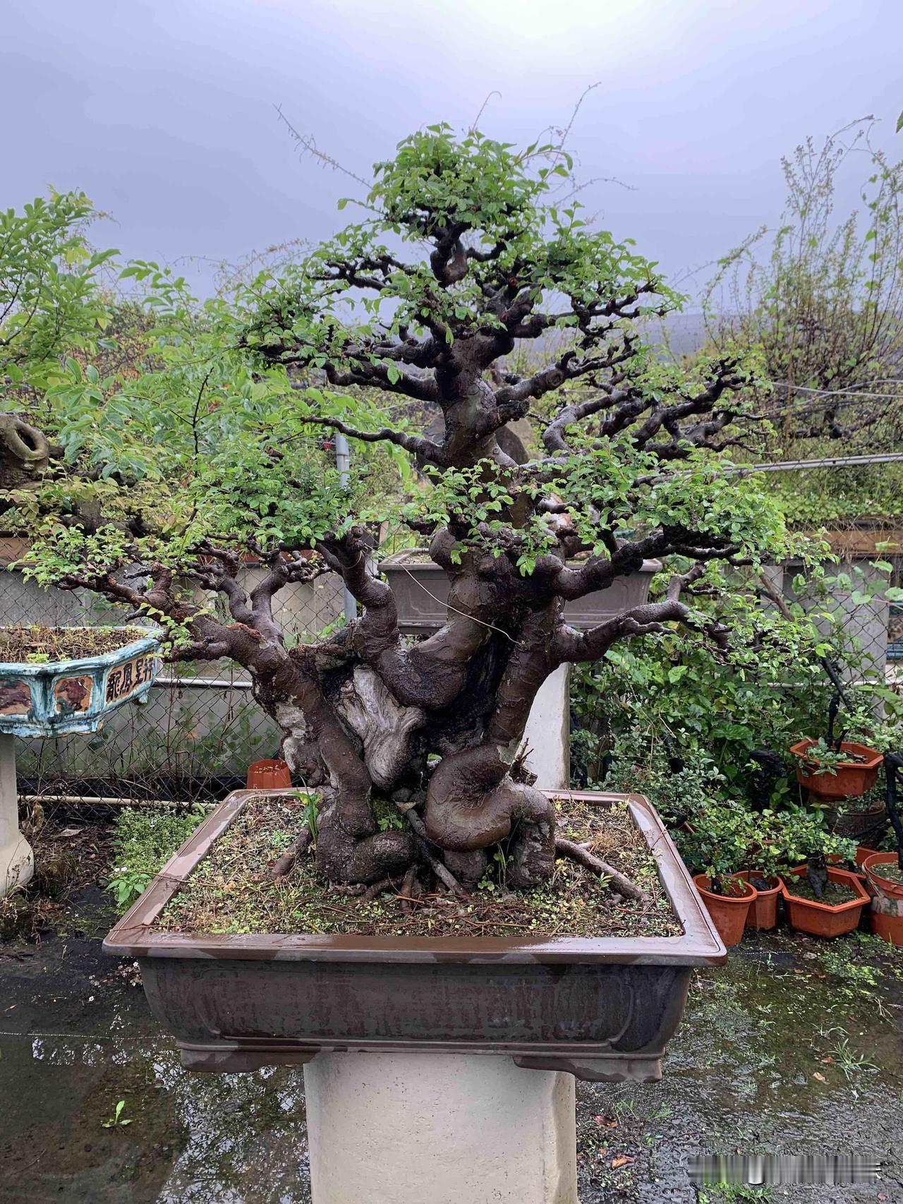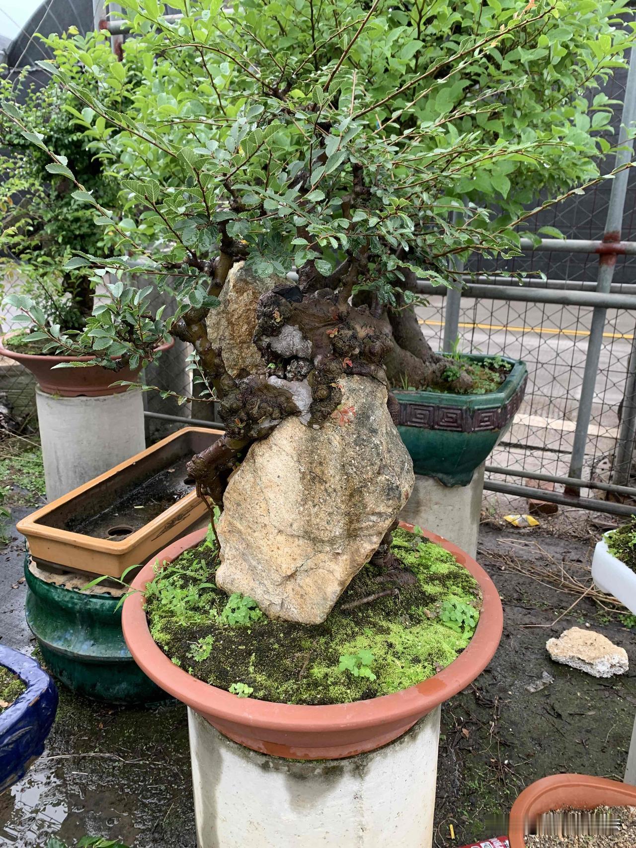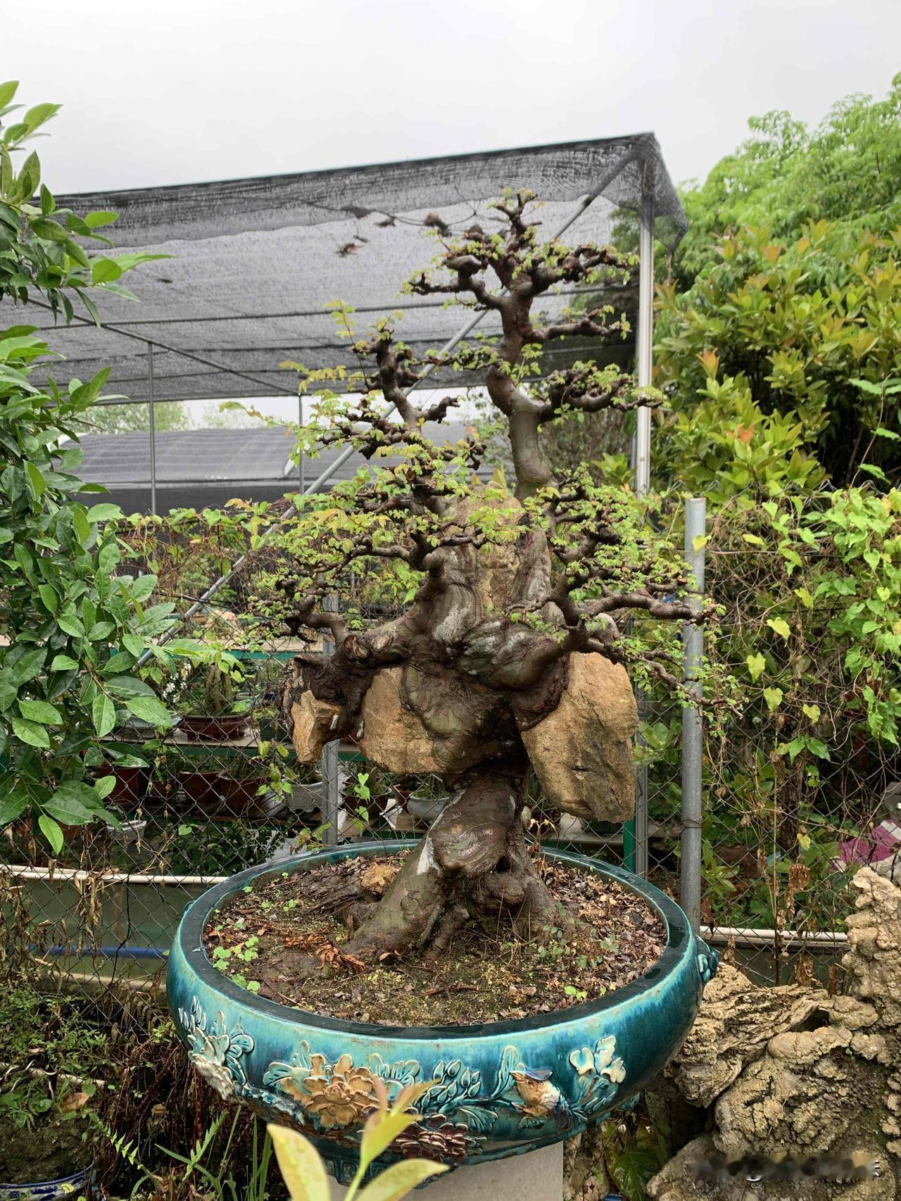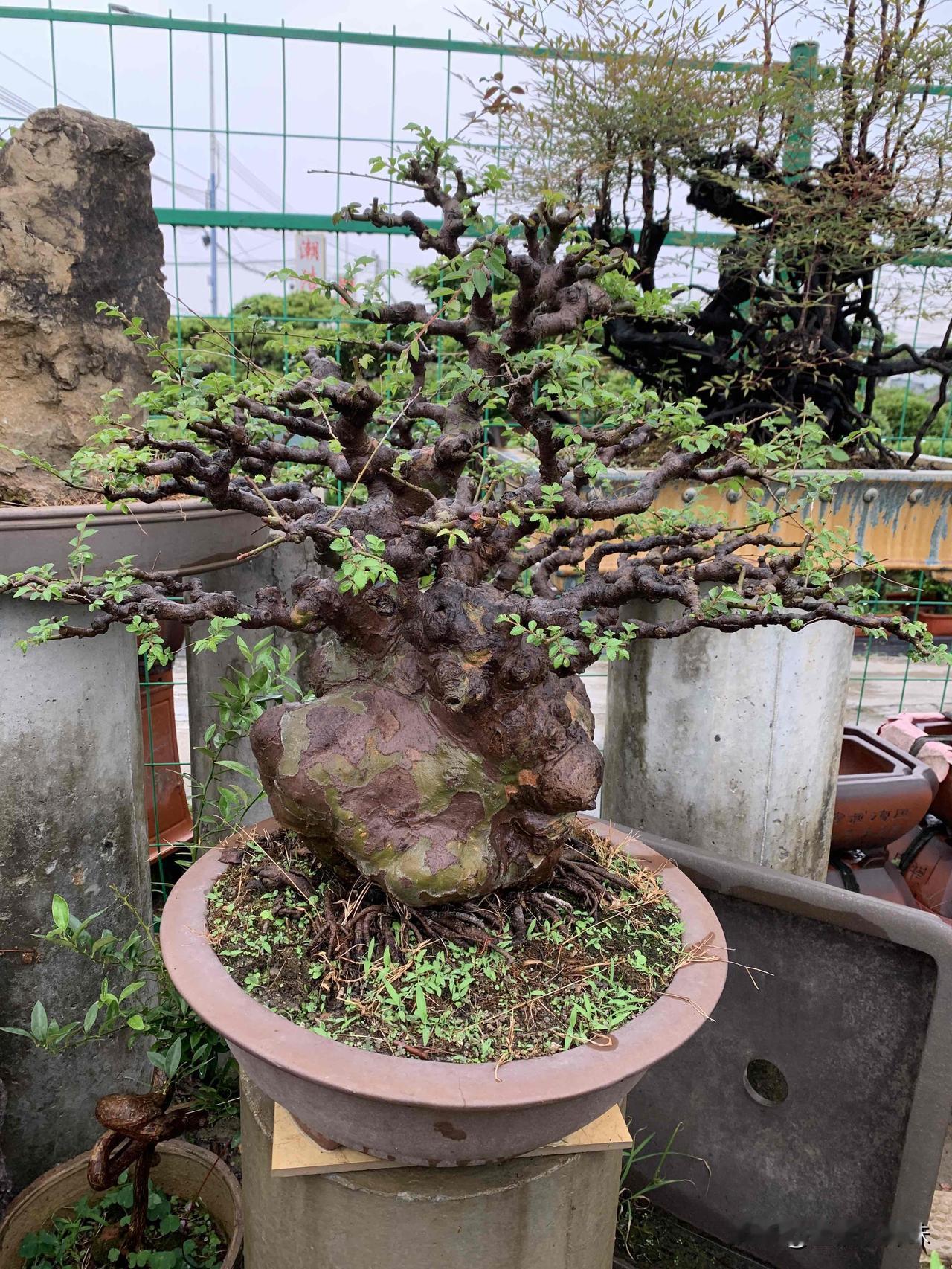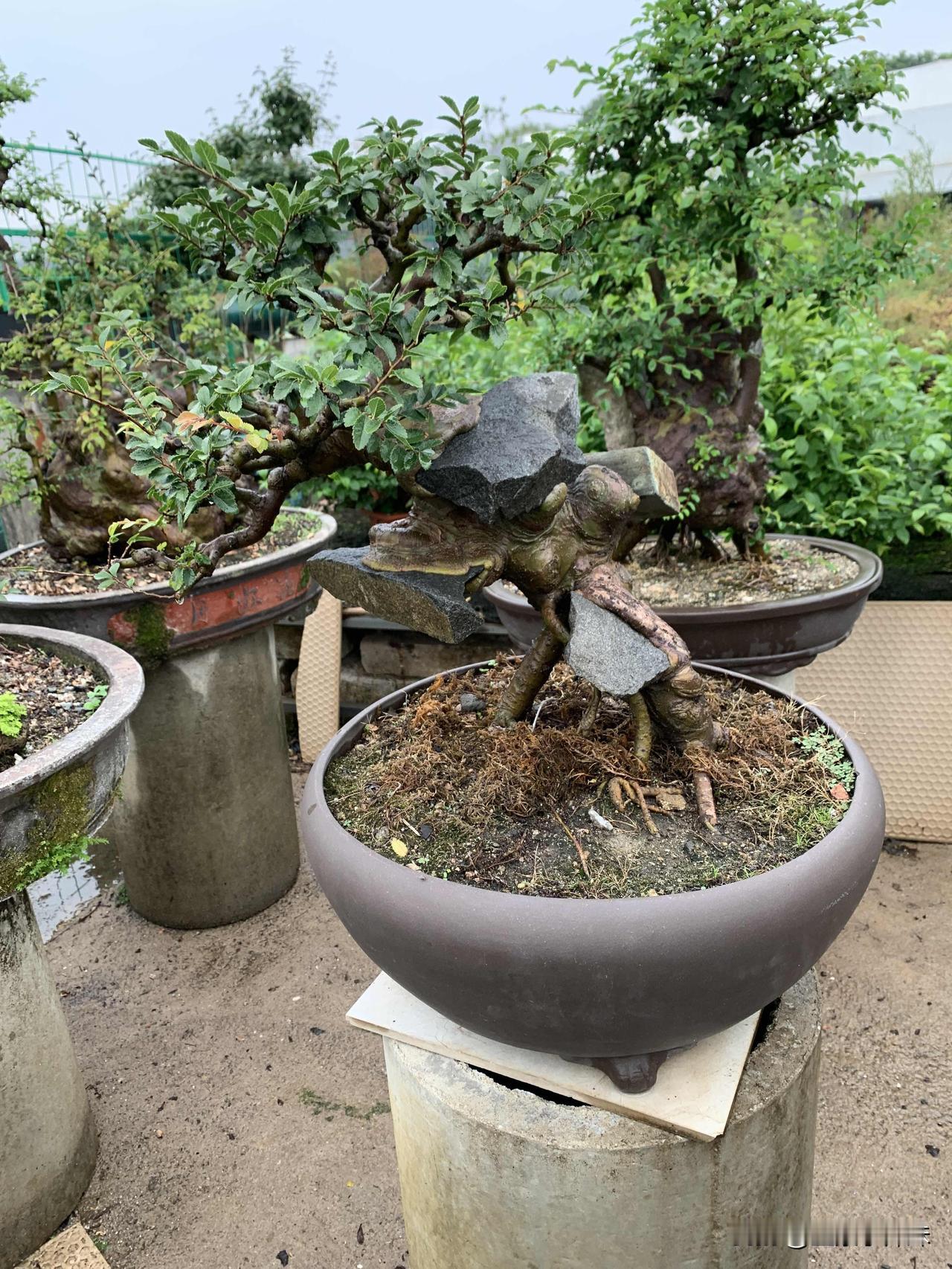 老榆凝岁月,寸盆纳山河,一景一乾坤。榆抱石盆景