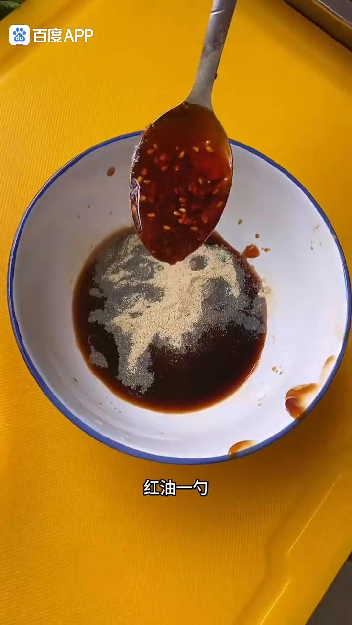 ·生抽两勺、香醋两勺、蚝油一勺、白糖两勺、一点盐、胡椒粉、红油一勺、清水放3勺灵魂料汁,搅拌搅拌,拔点蒜苔一会儿给你炒蒜苔吃。