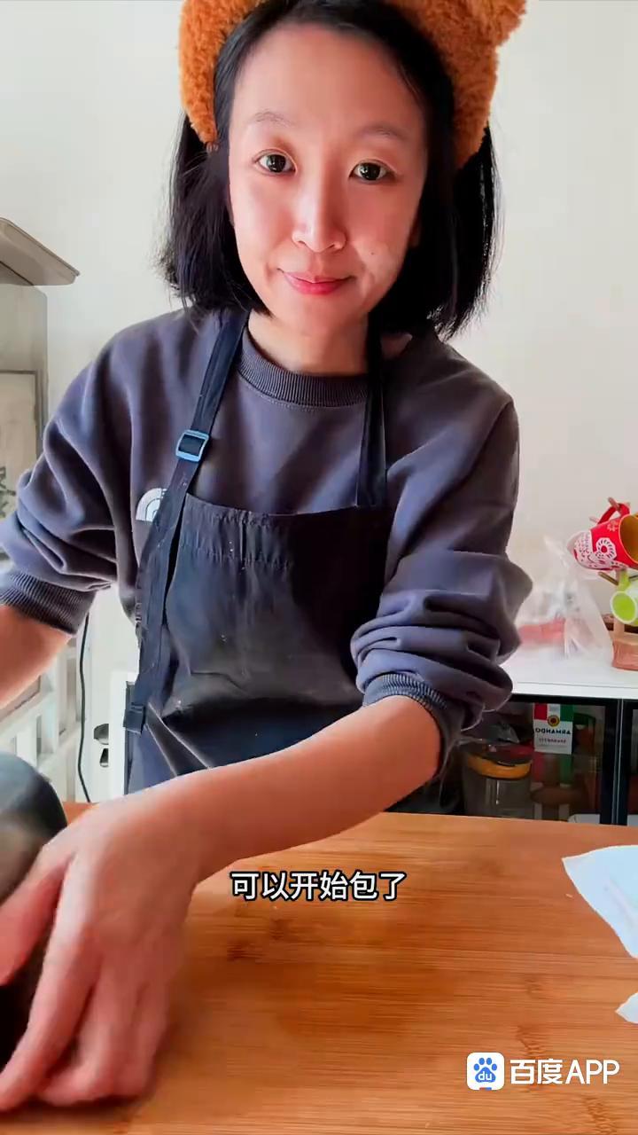 ·这个素包子不同于肉包子,素包子面剂子得大,得给这个素包子的馅装的满满当当的,一个手提着包,另一只手往下摁。