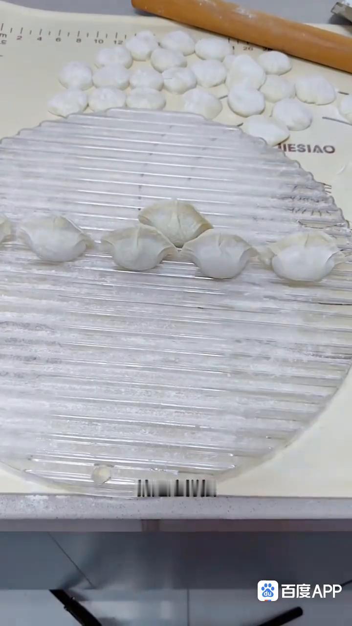 我给大家演示一下,为啥不让大家放在边上,放在中间,大家看见没有,我摆完边,这就着一个饺子就装装不下了。