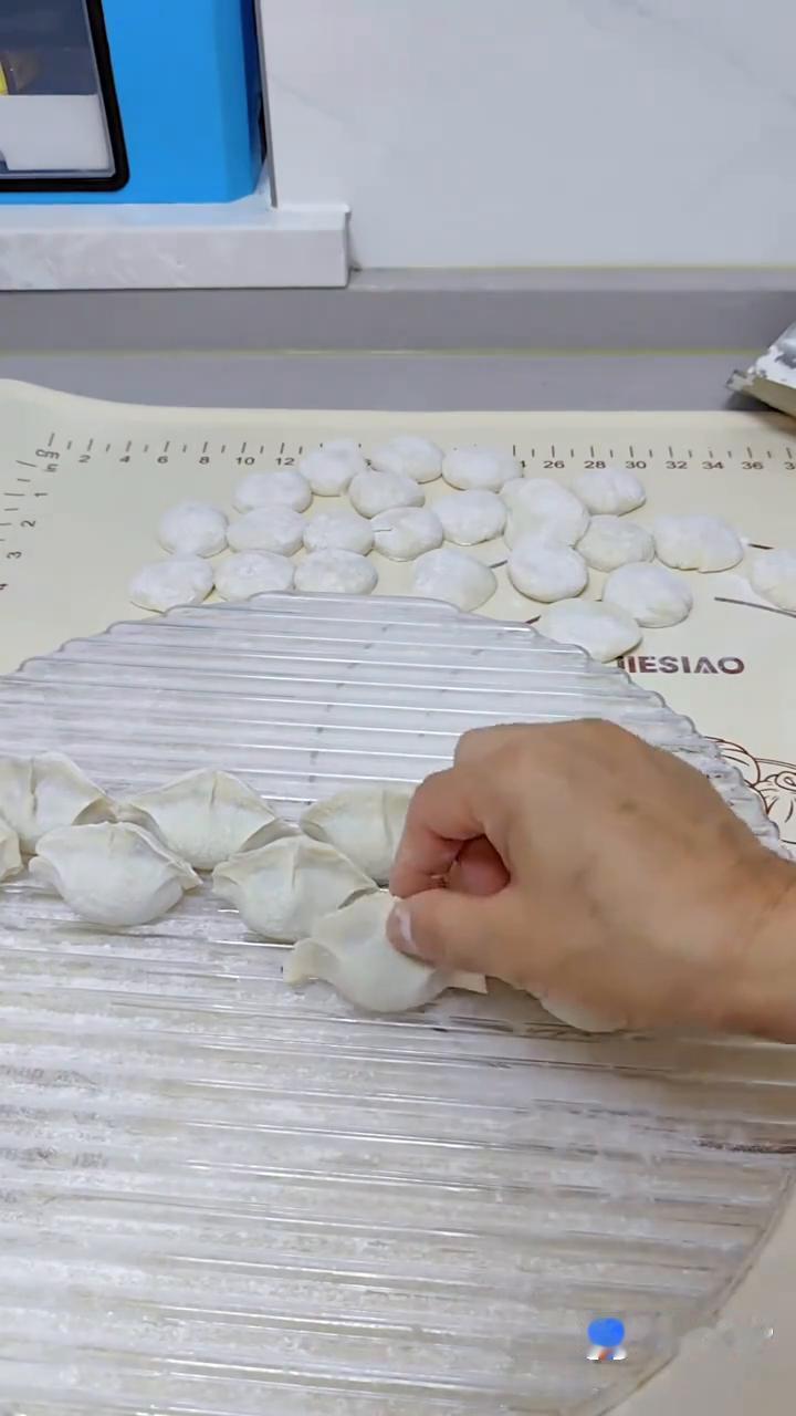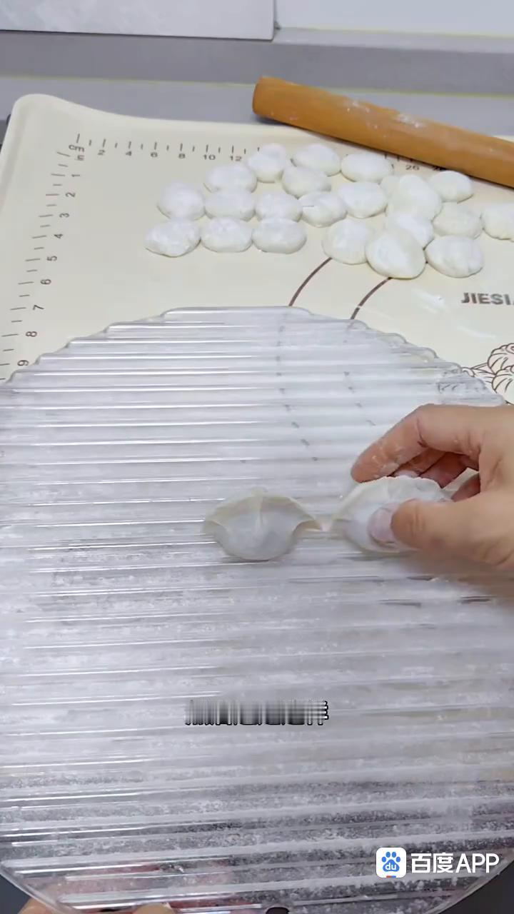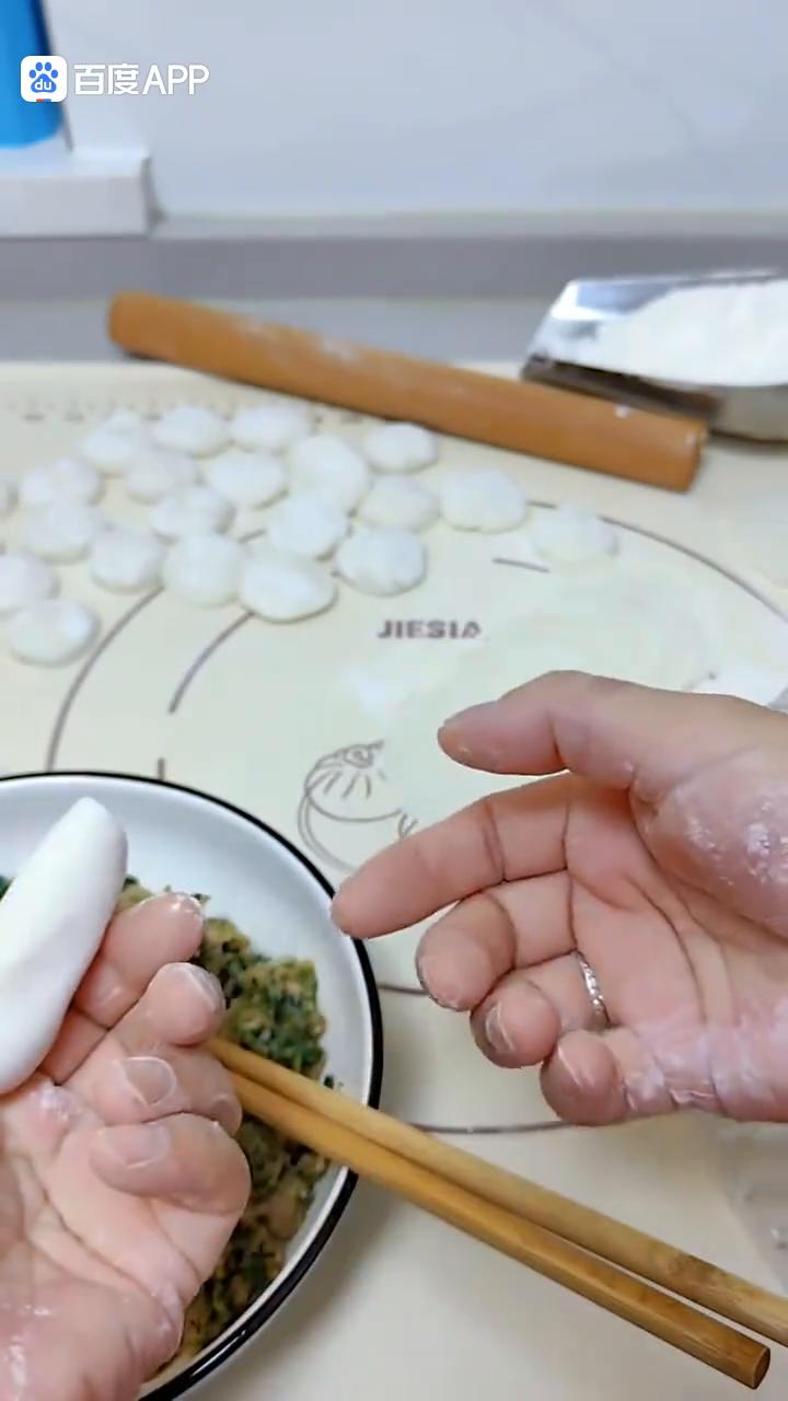 不要别问这盖上了,你们也别买这玩意,不好,我就是今天录视频用一下,平时都很少用,每个盖上不都有中间的位置,就我习惯了,拿过来,可能饺子一下就能坐在中间的位置。这是第一个饺子,第一个饺子别按边上放,放在中间。