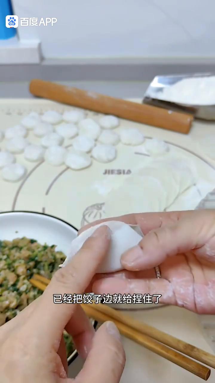 ·其实这个时候已经把饺子边就给捏住了,但是口肯定不严。这边也是同样的动作,但是这边是饺子躺在这个手指头的位置,手上这帮忙来用劲,这个手要弹在这。