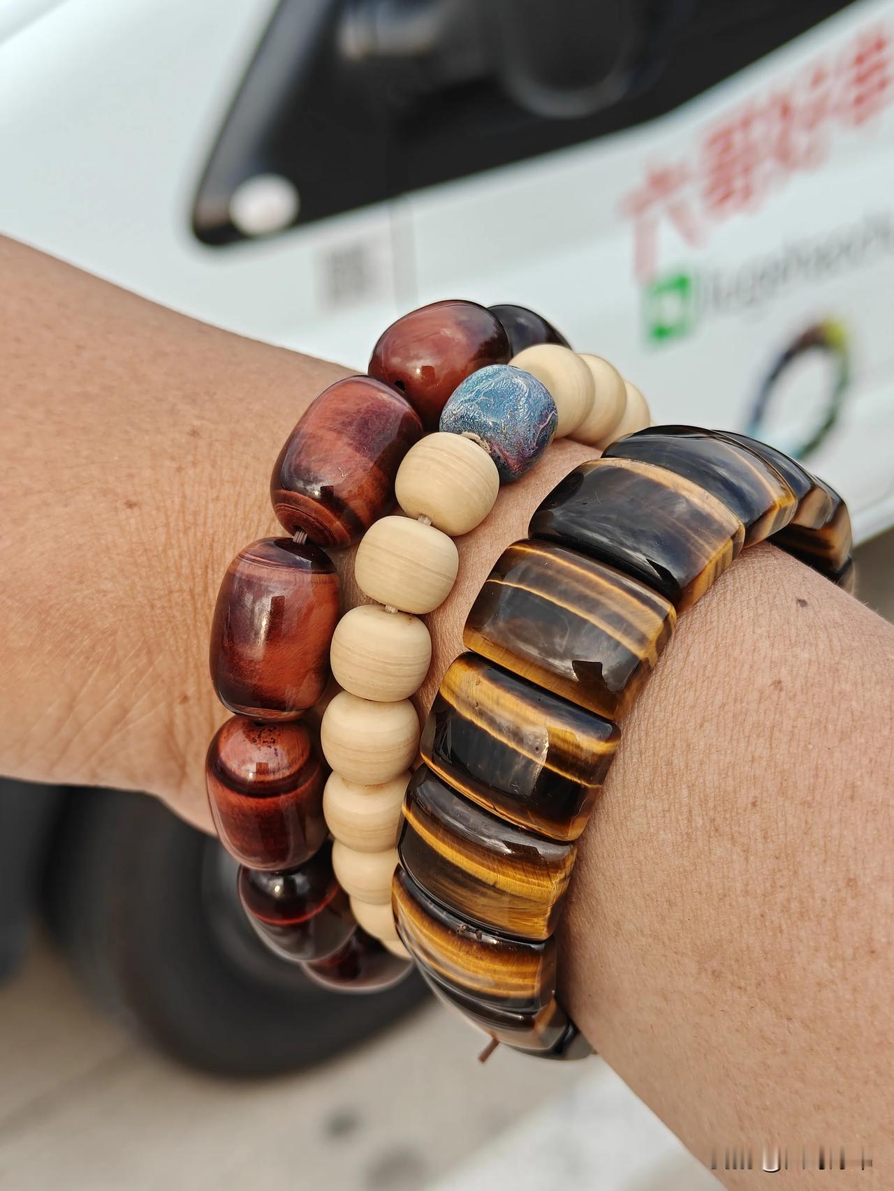 这三串搭配效果挺好看,红虎眼热烈如焰,黄虎眼沉稳如金,搭配猛犸象牙的温润奶白,天然肌理带着淡淡奶香,戴在手腕上就感觉自己充满了精气神儿!