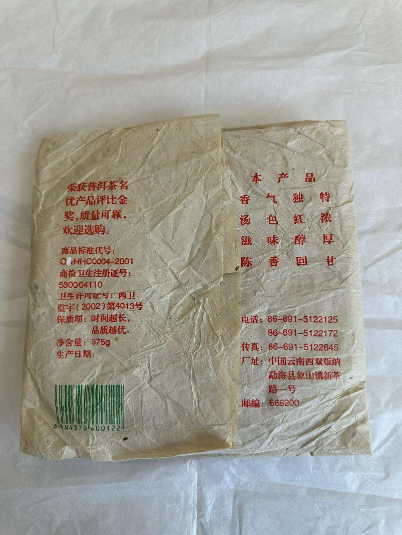 推荐一片特别好的高货好茶 2003年绿色生态302 375克,高烟香高香,原包