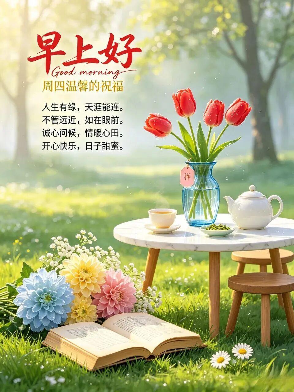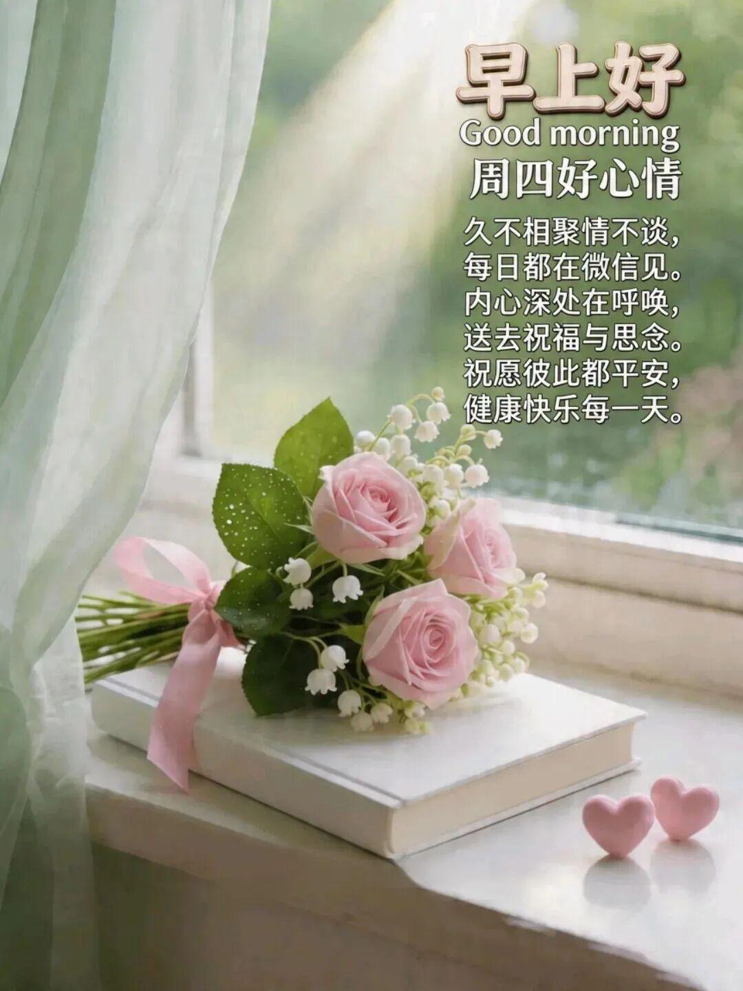 早安!春风送喜,花开吉祥。愿你鸿运大开,福气满满。以花开为序,赴美好之约;以顺遂为伴,享人生之乐。愿事业红红火火,家庭和和美美,日子甜甜蜜蜜,万事顺风顺水。🥰💖✨🌹