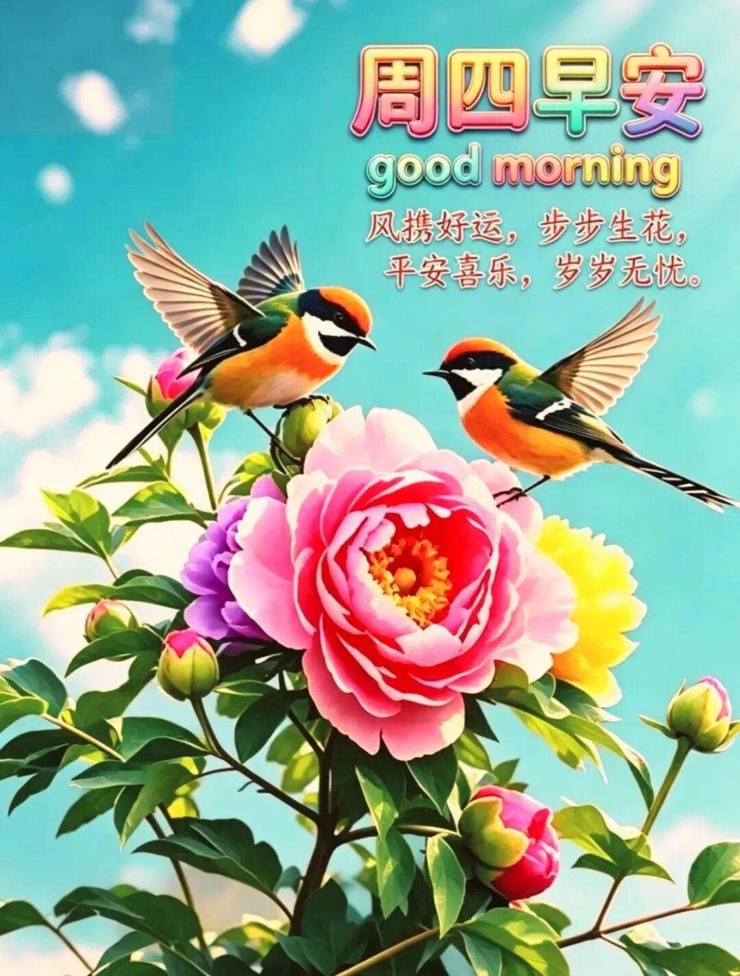 早安!春风送喜,花开吉祥。愿你鸿运大开,福气满满。以花开为序,赴美好之约;以顺遂