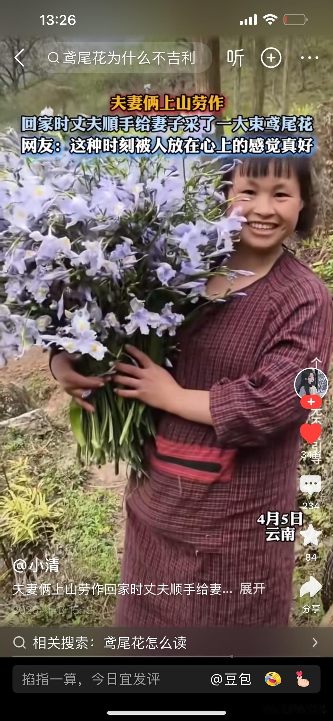 日子怎么可能跟谁过都是一样的呢?明明最浪漫的事,就是看见夫人抱着花,微笑的看着丈夫。那一刻,觉得整个世界都明媚了。 这世界的情啊爱啊,其实很简单,一束山花就能让那个女人笑颜如花。女人要求的真不多,只是遇到能把你放在心里的那个人不容易。
