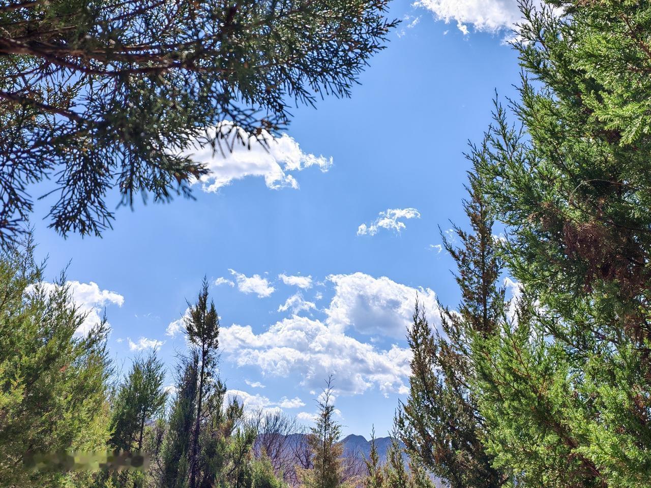 刚刚随手一拍,画面中是郁郁葱葱的森林枝叶,层层叠叠,宛如大自然精心编织的绿色帷幕。透过枝叶缝隙,蓝天映入眼帘,几朵白云悠然飘荡。
