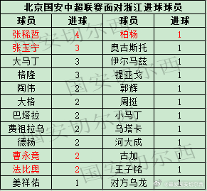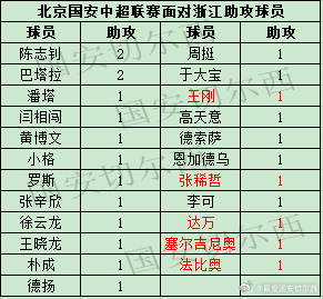 【国安职业联赛同浙江历史交锋战绩及进球助攻】